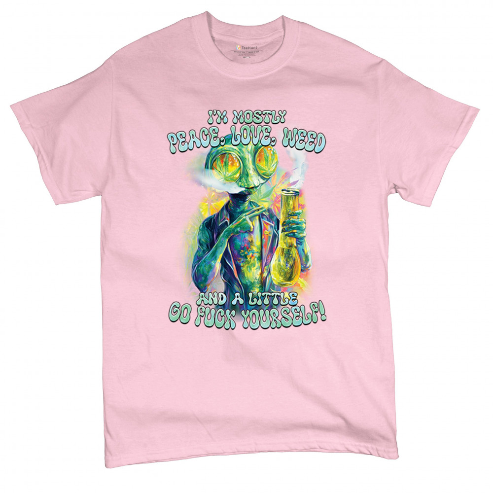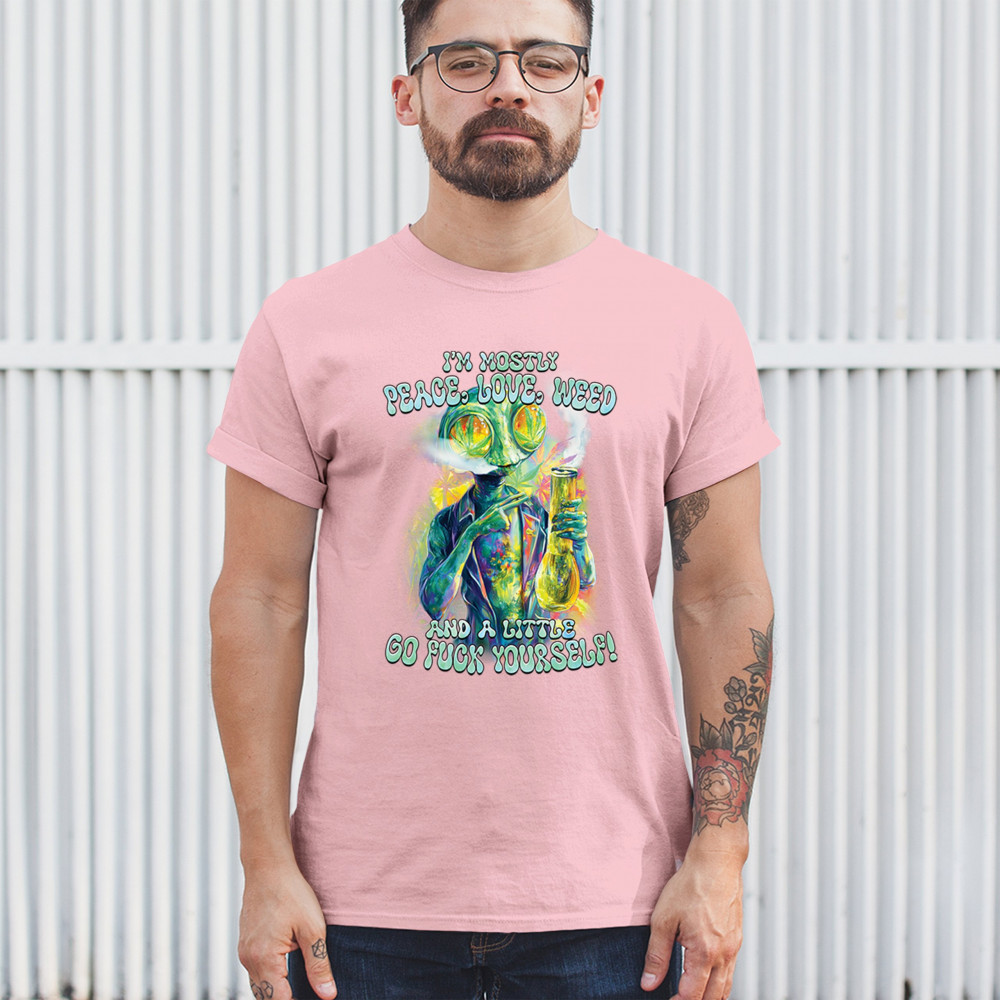 Bold alien cannabis design mixing humor, sarcasm, and weed culture—perfect for unapologetic smokers with attitude and peace vibes.