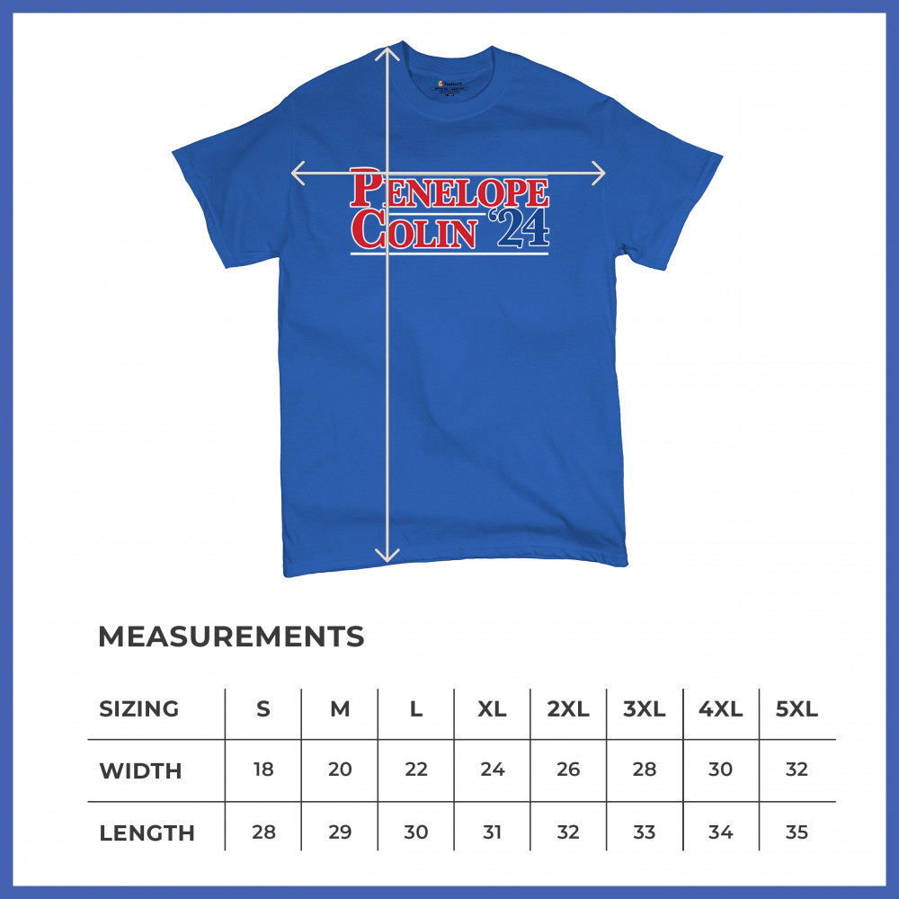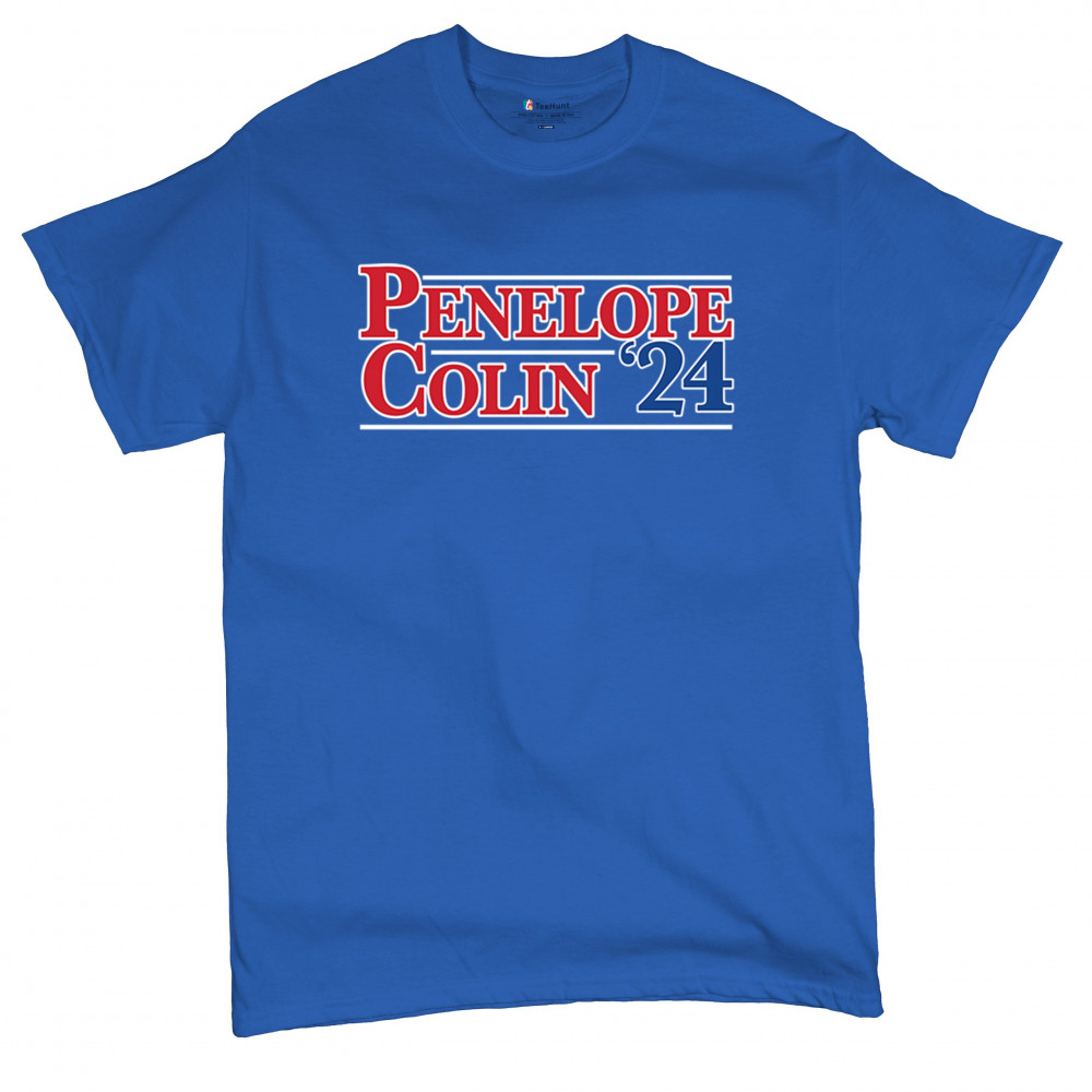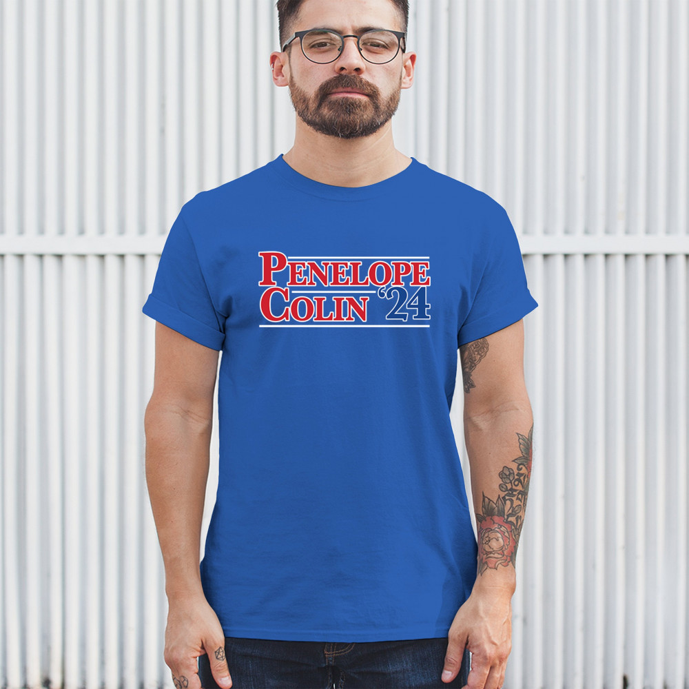 Step into the 2024 election season with a touch of humor and flair with our Penelope and Colin shirt. Designed for fans of political satire and pop culture, this shirt combines quality with a clever twist. Made from soft, high-quality fabric, it ensures comfort and longevity. Perfect for rallies, parties, or just a day out, this shirt will surely make you the center of attention. Embrace the fun side of politics and make a statement with this unique design.