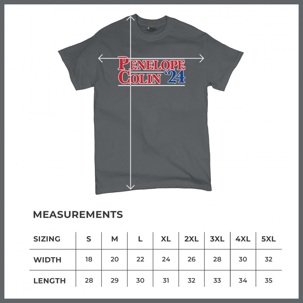 Step into the 2024 election season with a touch of humor and flair with our Penelope and Colin shirt. Designed for fans of political satire and pop culture, this shirt combines quality with a clever twist. Made from soft, high-quality fabric, it ensures comfort and longevity. Perfect for rallies, parties, or just a day out, this shirt will surely make you the center of attention. Embrace the fun side of politics and make a statement with this unique design.