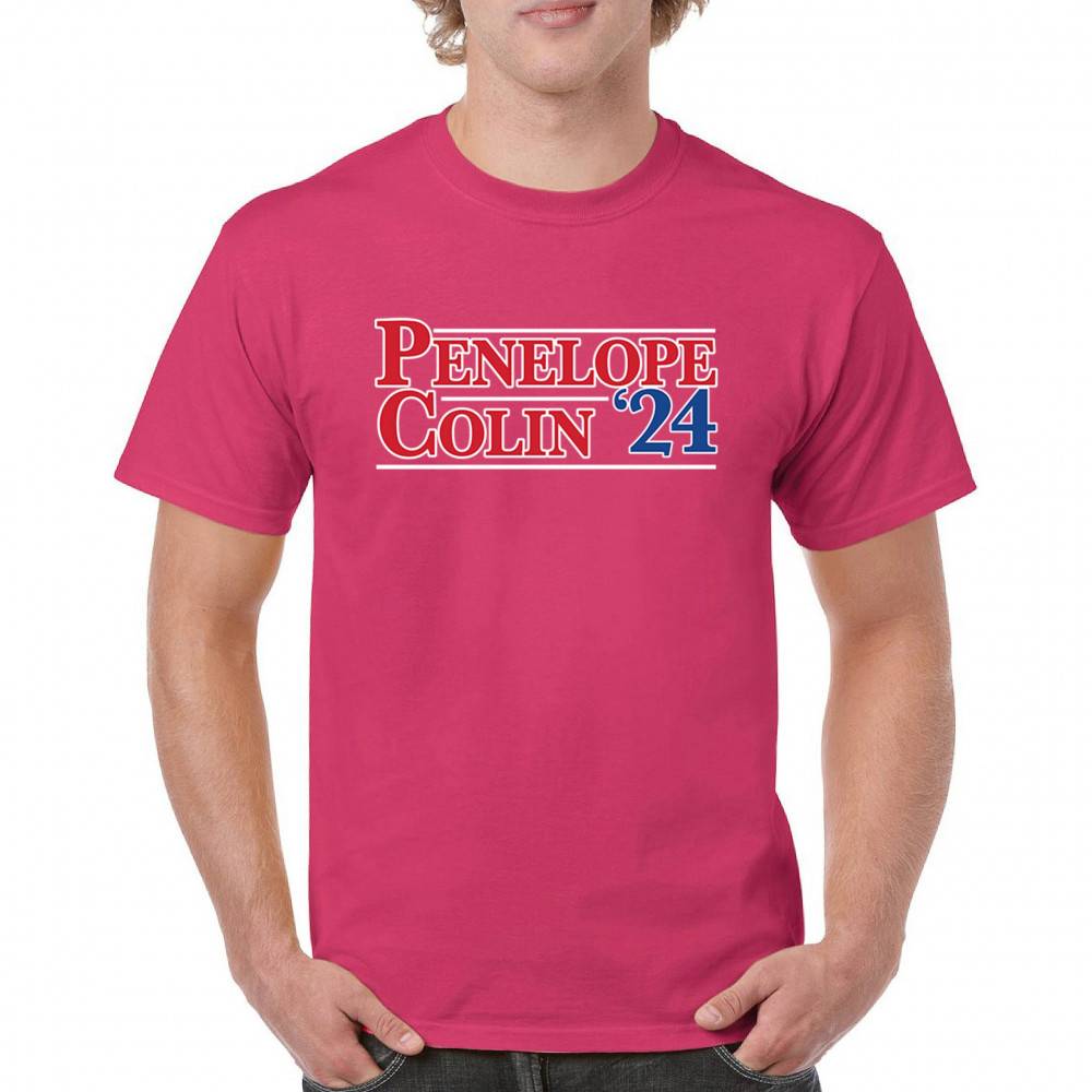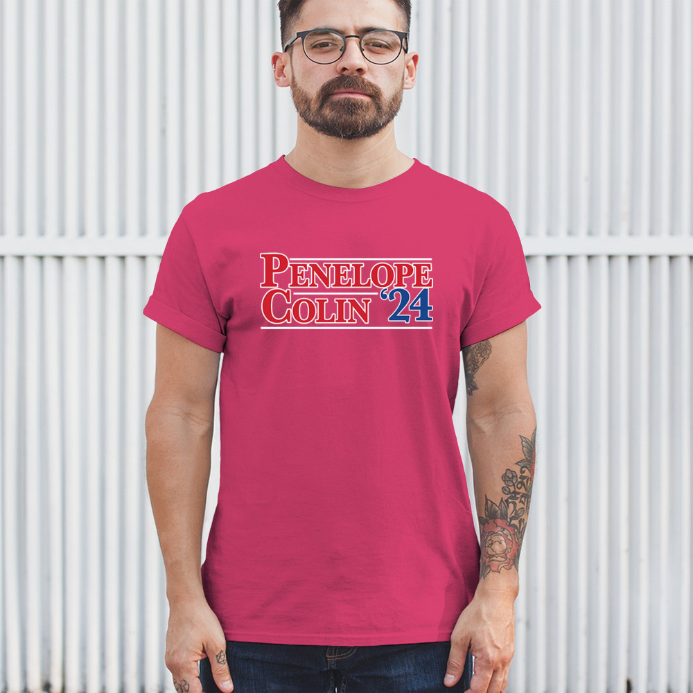 Step into the 2024 election season with a touch of humor and flair with our Penelope and Colin shirt. Designed for fans of political satire and pop culture, this shirt combines quality with a clever twist. Made from soft, high-quality fabric, it ensures comfort and longevity. Perfect for rallies, parties, or just a day out, this shirt will surely make you the center of attention. Embrace the fun side of politics and make a statement with this unique design.