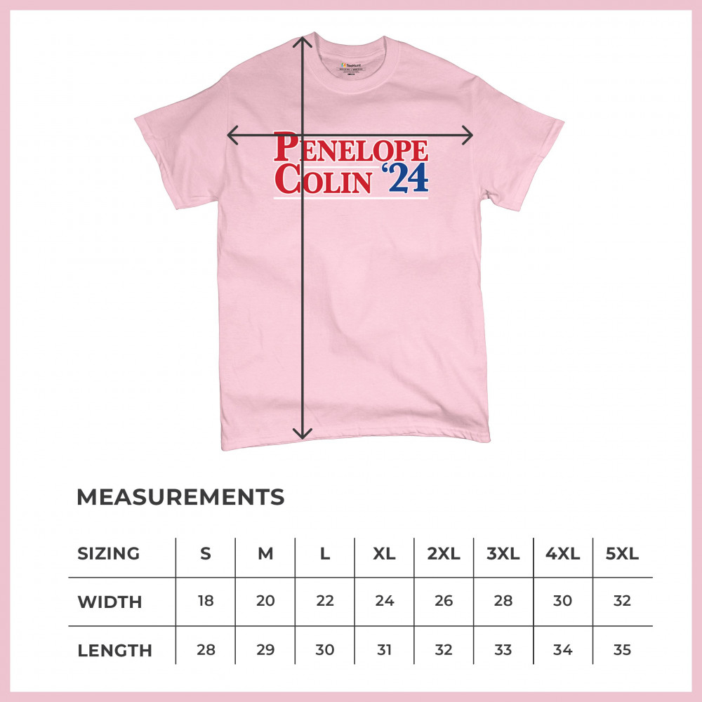 Step into the 2024 election season with a touch of humor and flair with our Penelope and Colin shirt. Designed for fans of political satire and pop culture, this shirt combines quality with a clever twist. Made from soft, high-quality fabric, it ensures comfort and longevity. Perfect for rallies, parties, or just a day out, this shirt will surely make you the center of attention. Embrace the fun side of politics and make a statement with this unique design.