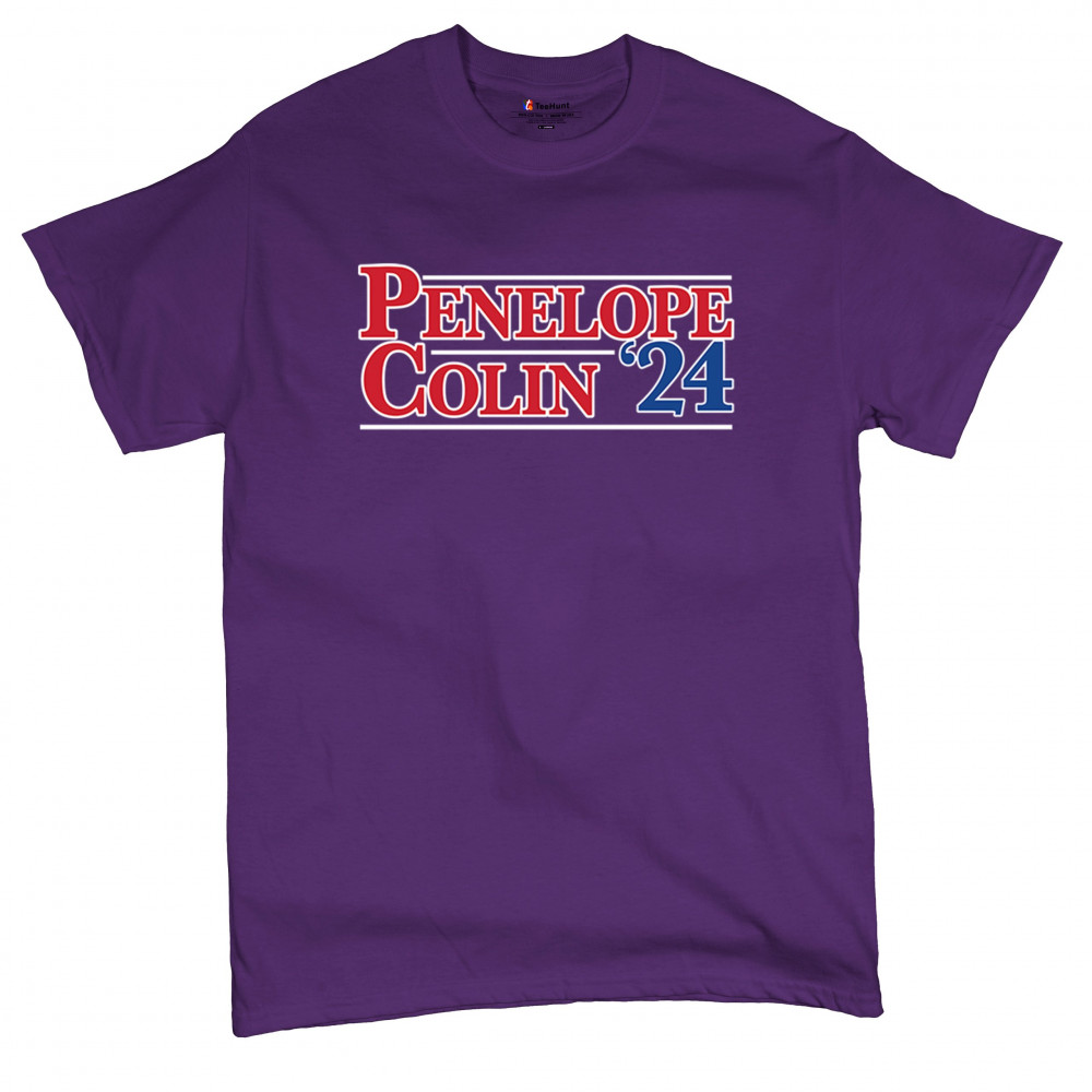 Step into the 2024 election season with a touch of humor and flair with our Penelope and Colin shirt. Designed for fans of political satire and pop culture, this shirt combines quality with a clever twist. Made from soft, high-quality fabric, it ensures comfort and longevity. Perfect for rallies, parties, or just a day out, this shirt will surely make you the center of attention. Embrace the fun side of politics and make a statement with this unique design.