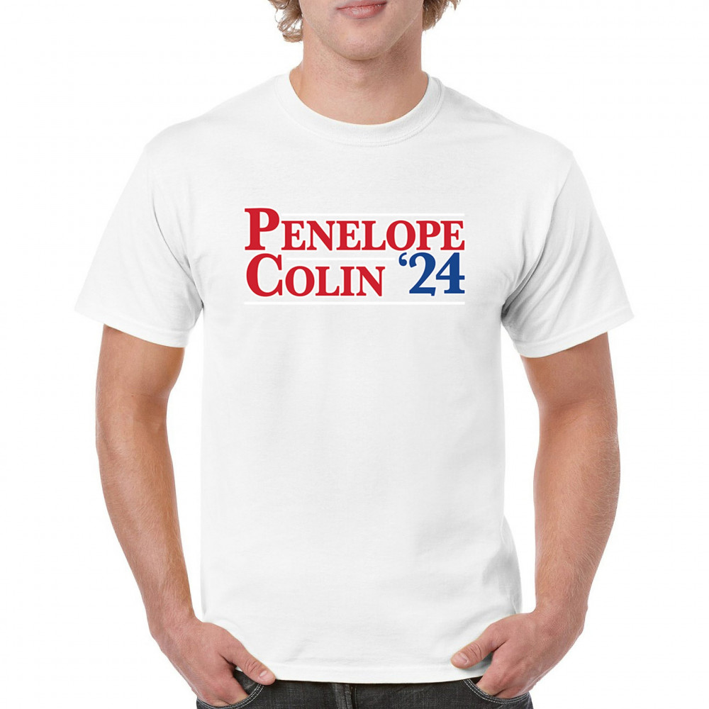 Step into the 2024 election season with a touch of humor and flair with our Penelope and Colin shirt. Designed for fans of political satire and pop culture, this shirt combines quality with a clever twist. Made from soft, high-quality fabric, it ensures comfort and longevity. Perfect for rallies, parties, or just a day out, this shirt will surely make you the center of attention. Embrace the fun side of politics and make a statement with this unique design.