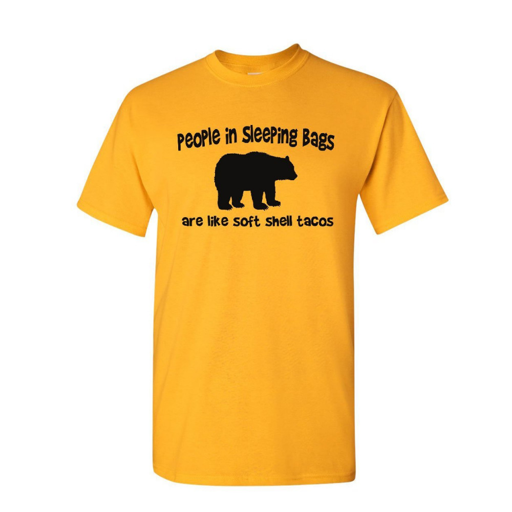 PEOPLE ARE SOFT SHELL TACOS t-shirt funny camping brown bear mens tee shirt yellow