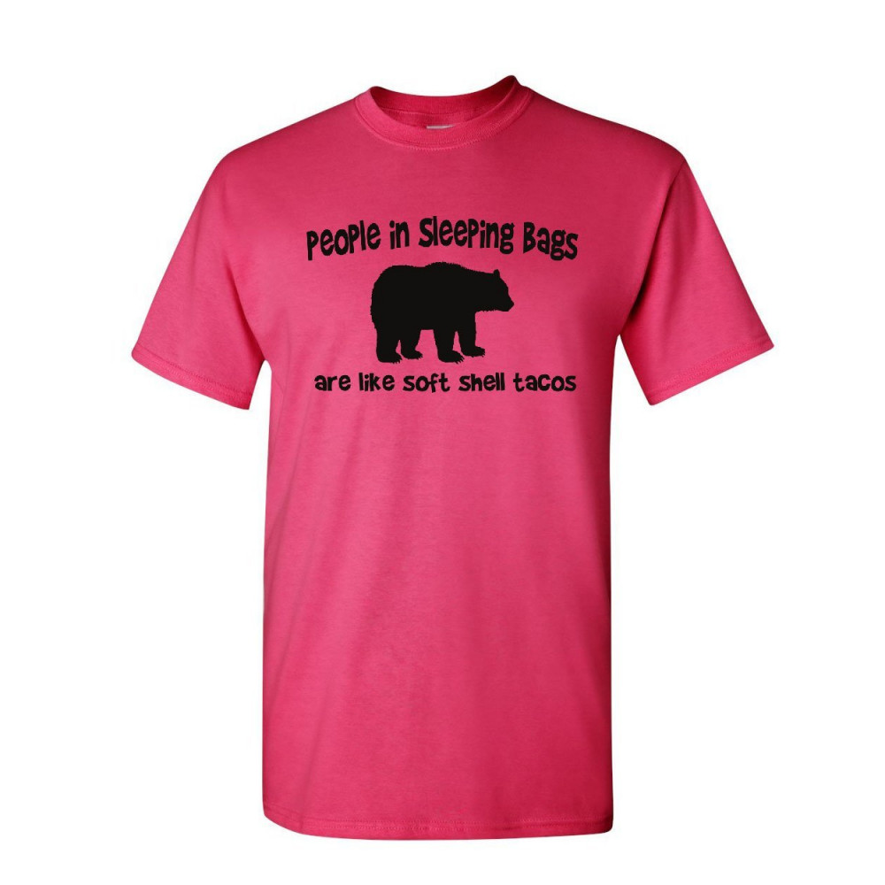 PEOPLE ARE SOFT SHELL TACOS t-shirt funny camping brown bear mens tee shirt hot pink