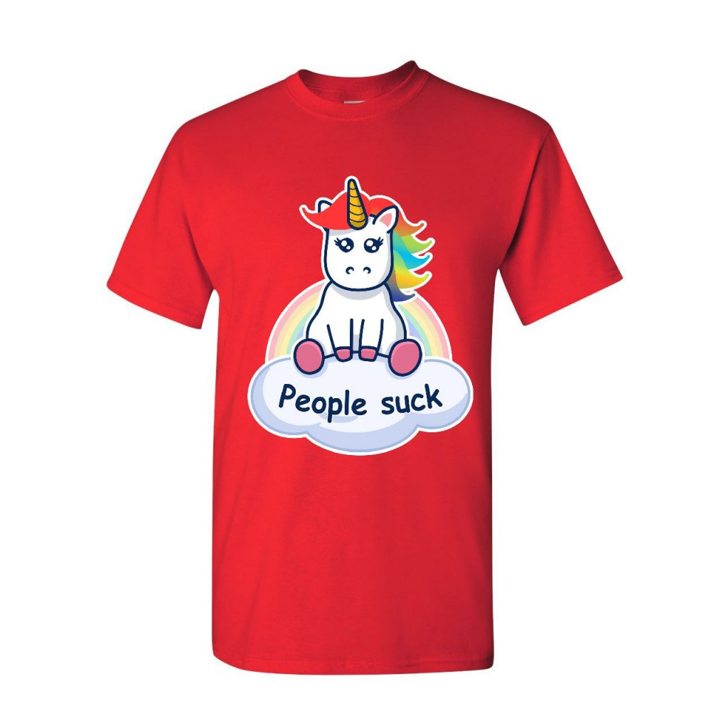 PEOPLE SUCK cute unicorn t-shirt funny rainbow pony introvert mens tee shirt red