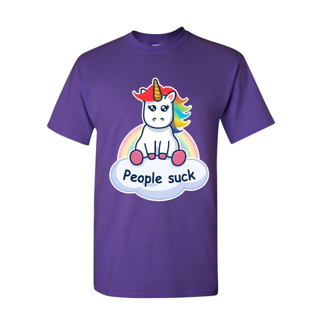 PEOPLE SUCK cute unicorn t-shirt funny rainbow pony introvert mens tee shirt purple