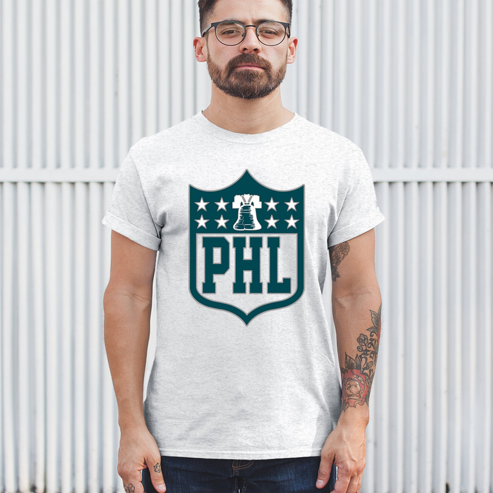 Bold PHL shield with liberty bell, perfect for Sunday football, big game energy, and Philadelphia pride for true fans.