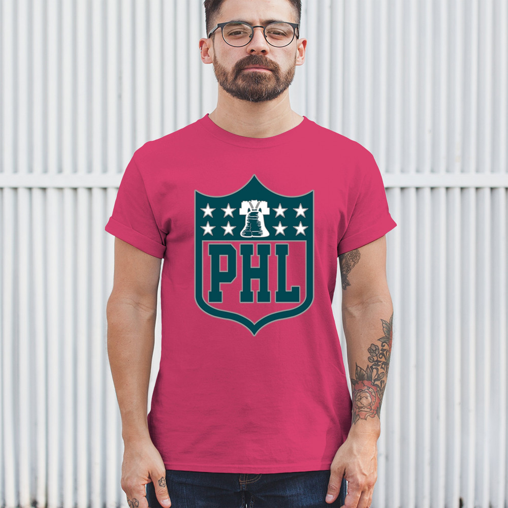 Bold PHL shield with liberty bell, perfect for Sunday football, big game energy, and Philadelphia pride for true fans.