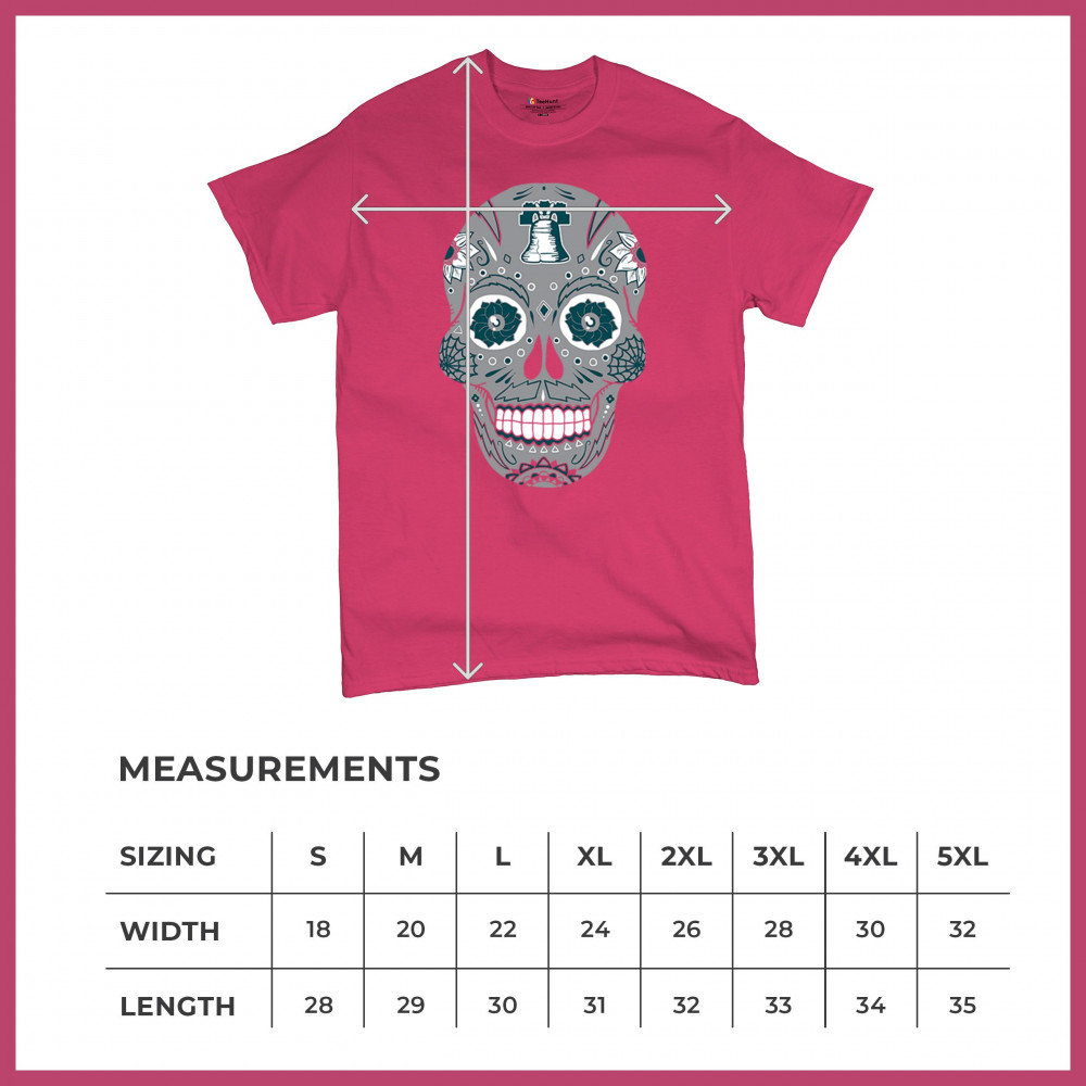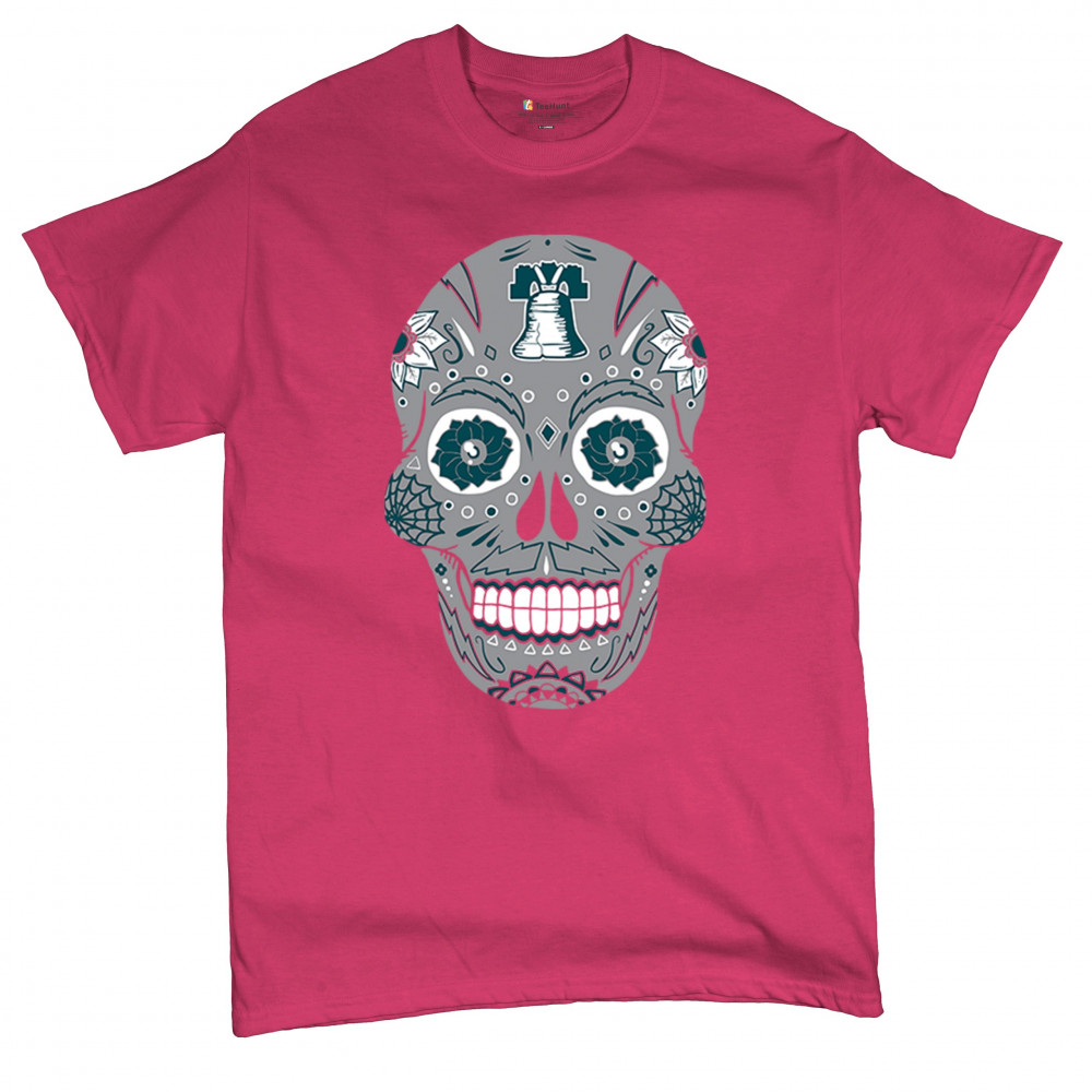 Philly meets tradition in this Sugar Skull design, mixing calavera art with the iconic liberty bell and marigold flowers. Perfect for Philly sports culture, fantasy league energy, or game day skull vibes, it captures Philly gothic art and fan zone spirit. A unique way to honor Dia de los Muertos while showing local Philadelphia pride and heritage in bold style.
