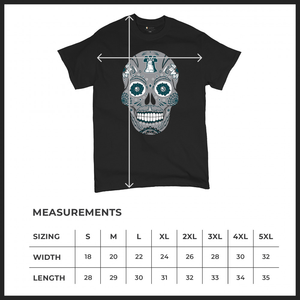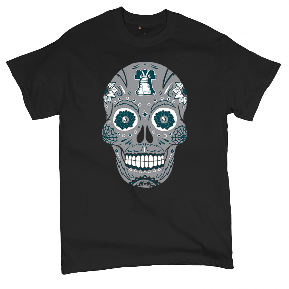 Philly meets tradition in this Sugar Skull design, mixing calavera art with the iconic liberty bell and marigold flowers. Perfect for Philly sports culture, fantasy league energy, or game day skull vibes, it captures Philly gothic art and fan zone spirit. A unique way to honor Dia de los Muertos while showing local Philadelphia pride and heritage in bold style.