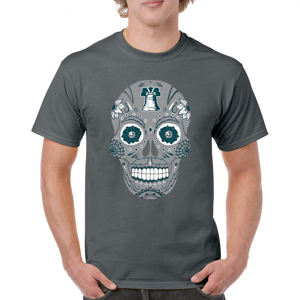 Philly meets tradition in this Sugar Skull design, mixing calavera art with the iconic liberty bell and marigold flowers. Perfect for Philly sports culture, fantasy league energy, or game day skull vibes, it captures Philly gothic art and fan zone spirit. A unique way to honor Dia de los Muertos while showing local Philadelphia pride and heritage in bold style.