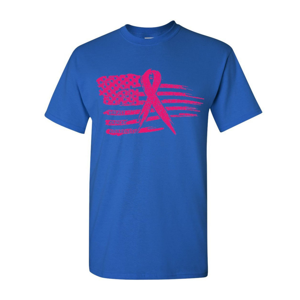 PINK RIBBON AMERICAN FLAG pink ribbon flag t-shirt breast cancer awareness hope survivor mens tee shirt royal blue