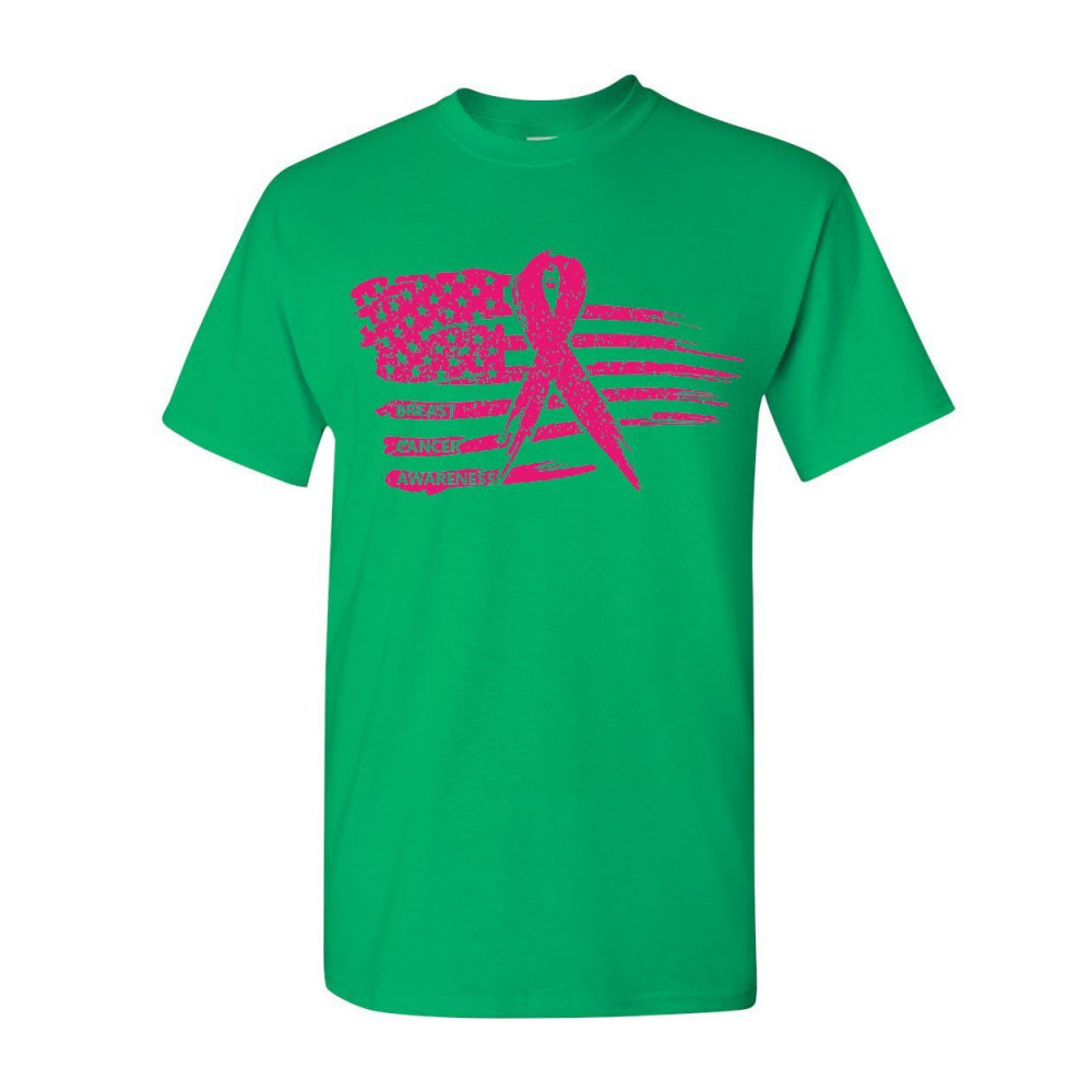 PINK RIBBON AMERICAN FLAG pink ribbon flag t-shirt breast cancer awareness hope survivor mens tee shirt green