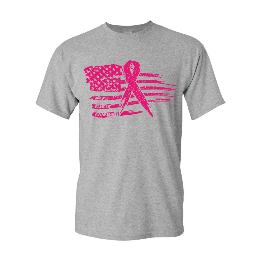 PINK RIBBON AMERICAN FLAG pink ribbon flag t-shirt breast cancer awareness hope survivor mens tee shirt sport gray