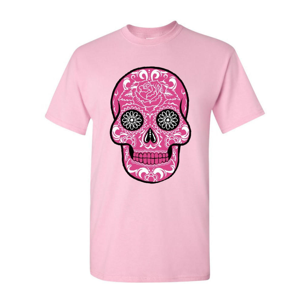 CALAVERA PINK SUGAR SKULL pink sugar skull with roses t-shirt day of the dead cotton tee light pink