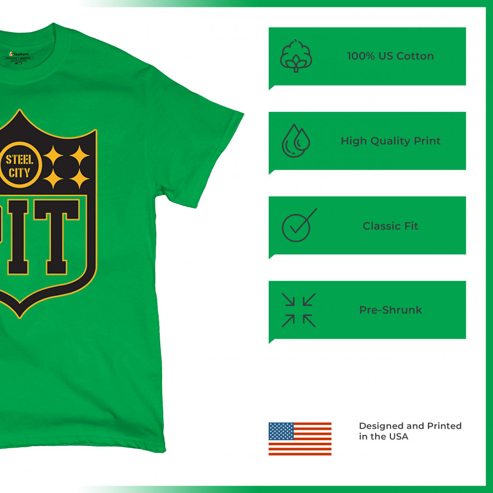 Steel City PIT shield football gear celebrating Pittsburgh football nation, gridiron tradition, playoff vibes, and sports heritage.