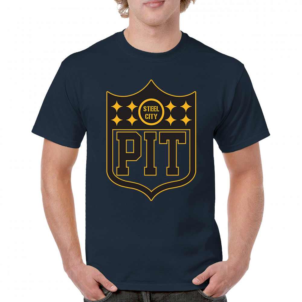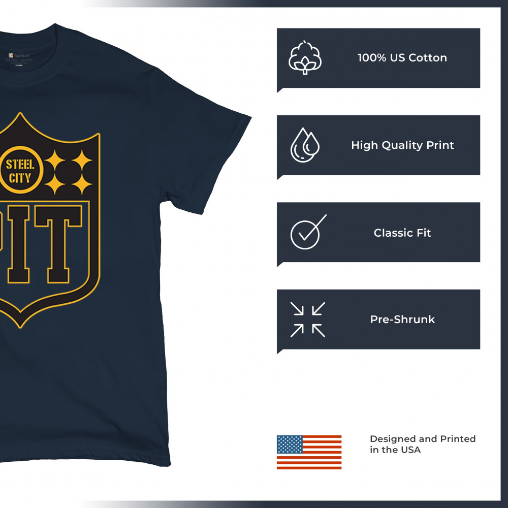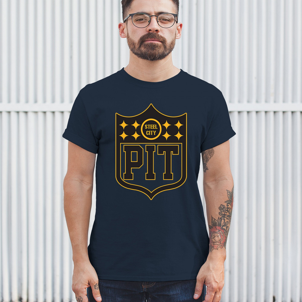 Steel City PIT shield football gear celebrating Pittsburgh football nation, gridiron tradition, playoff vibes, and sports heritage.