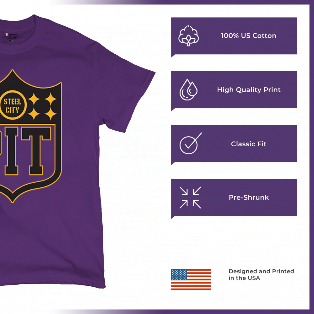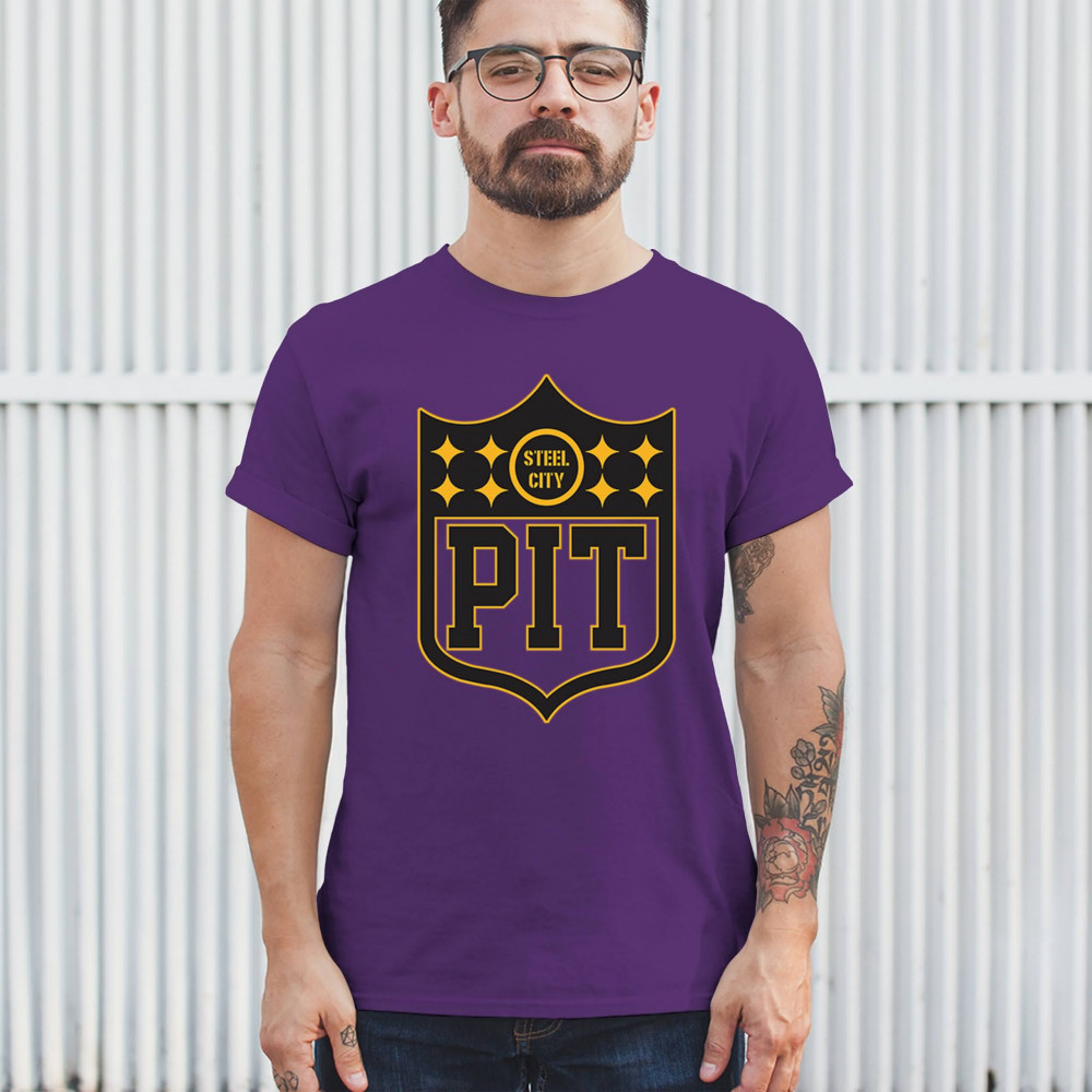Steel City PIT shield football gear celebrating Pittsburgh football nation, gridiron tradition, playoff vibes, and sports heritage.