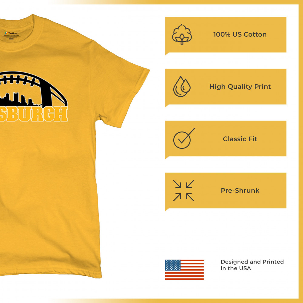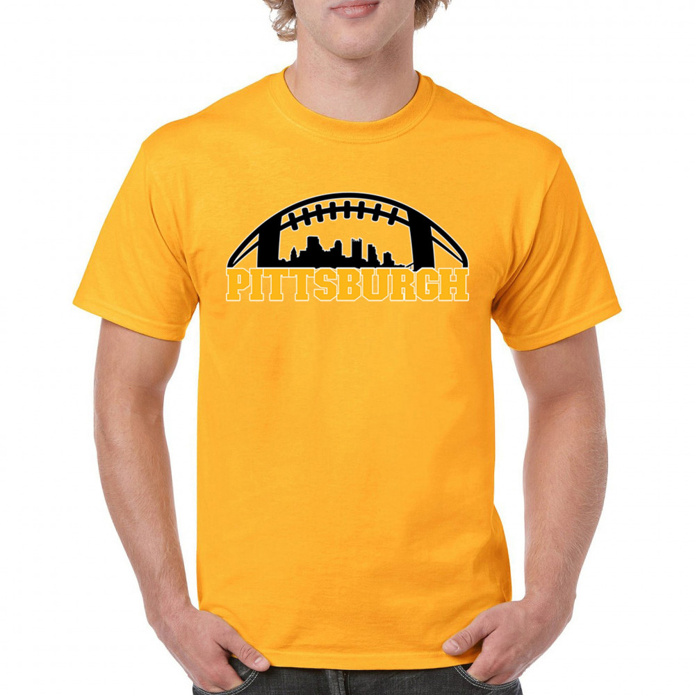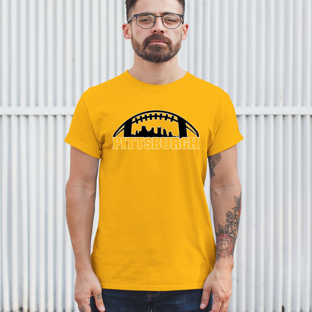 Embrace your Steel City pride with this bold Pittsburgh-themed design, showcasing the city skyline in a unique football graphic. Perfect for game day celebrations, tailgating parties, or everyday wear, this design captures the energy and passion of Pittsburgh's legendary sports culture. Whether you're cheering on your favorite team or representing your city, this design is a must-have for Pittsburgh fans.