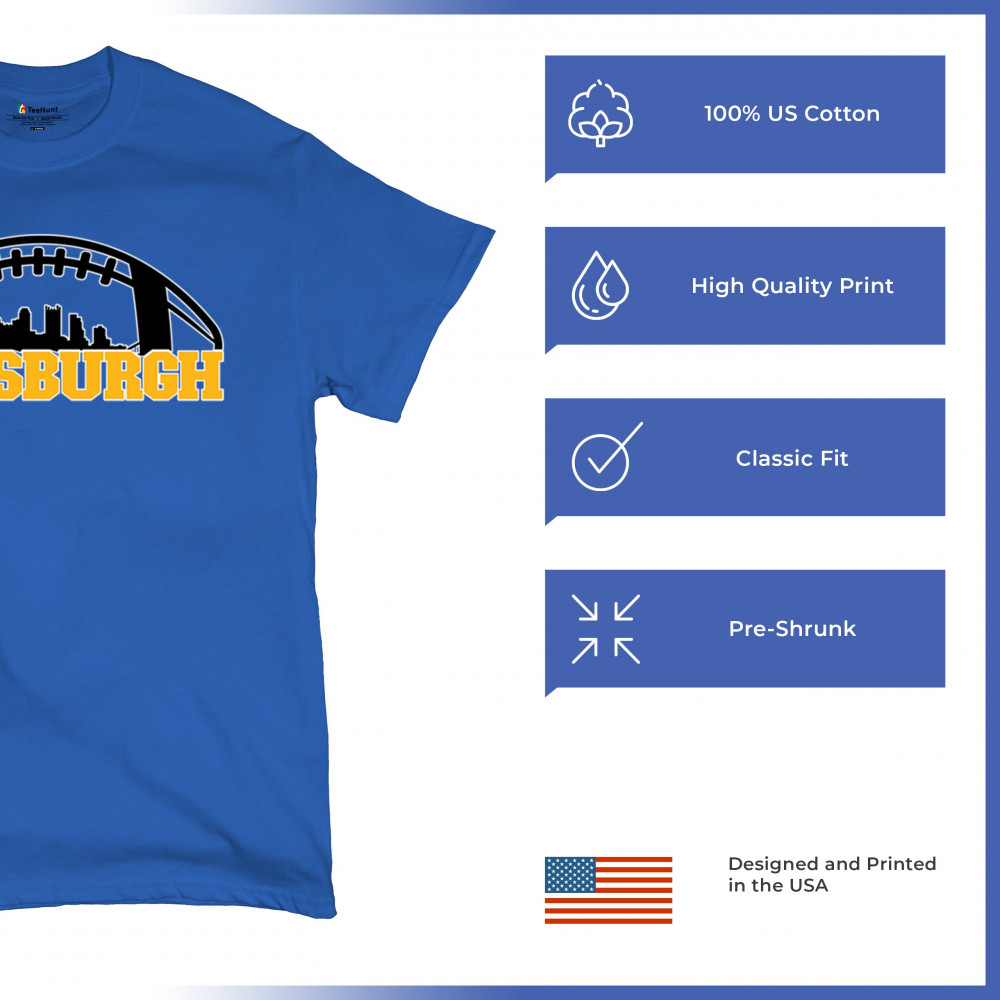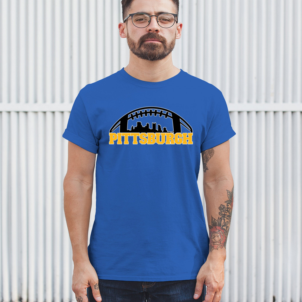 Embrace your Steel City pride with this bold Pittsburgh-themed design, showcasing the city skyline in a unique football graphic. Perfect for game day celebrations, tailgating parties, or everyday wear, this design captures the energy and passion of Pittsburgh's legendary sports culture. Whether you're cheering on your favorite team or representing your city, this design is a must-have for Pittsburgh fans.