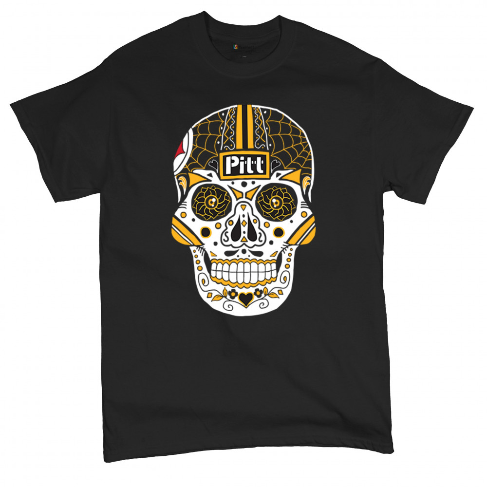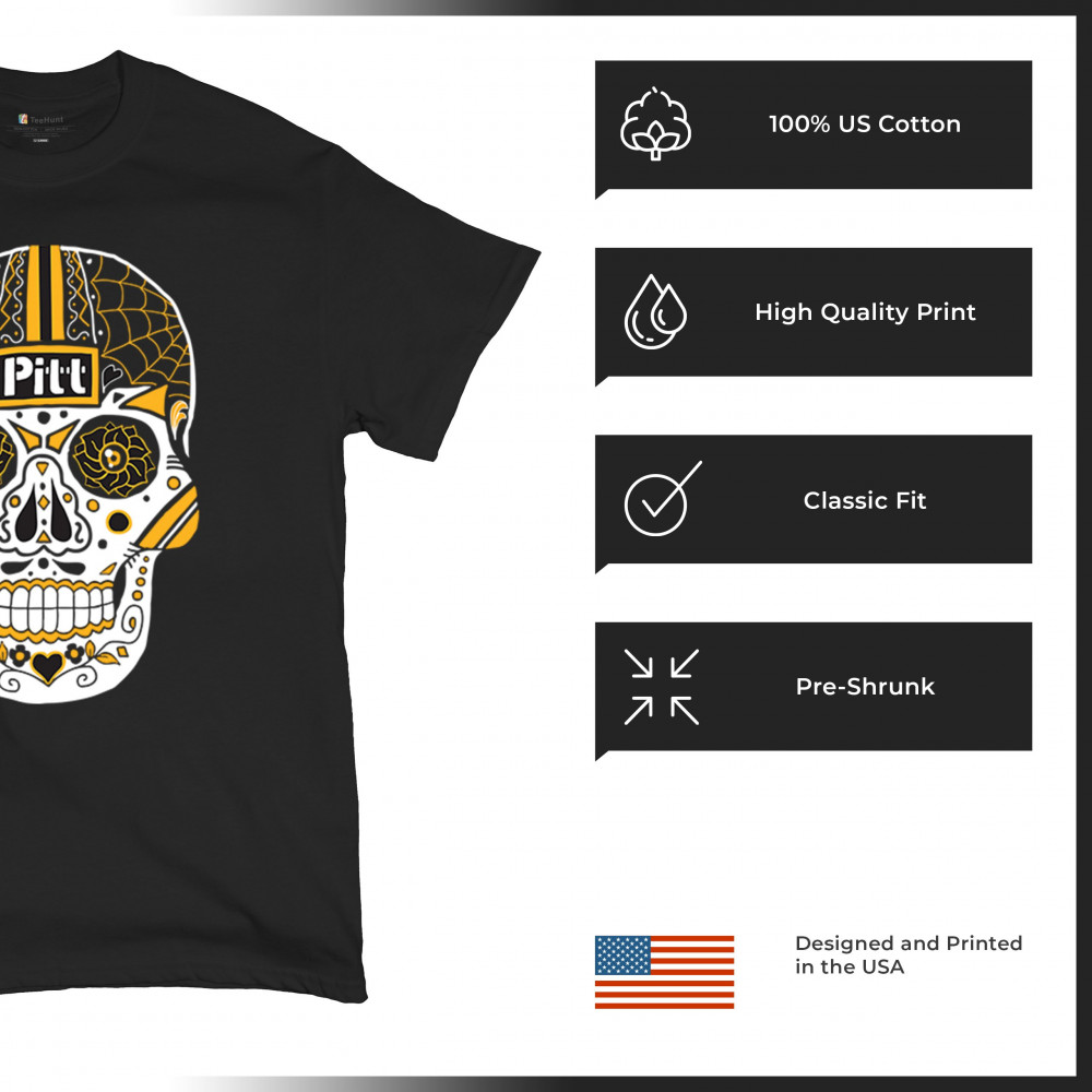 Pittsburgh Sugar Skull with Steel City tradition, black & gold pride, Rust Belt toughness, playoff energy, and fan culture.