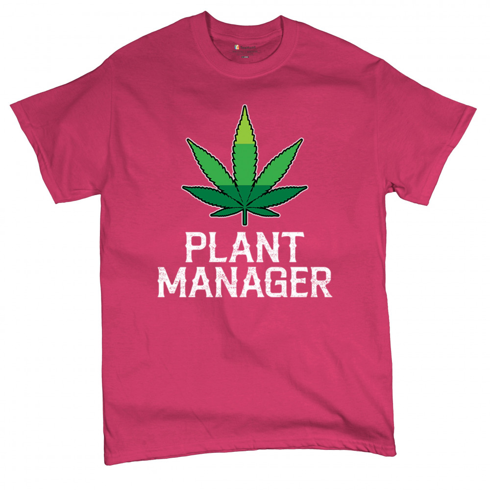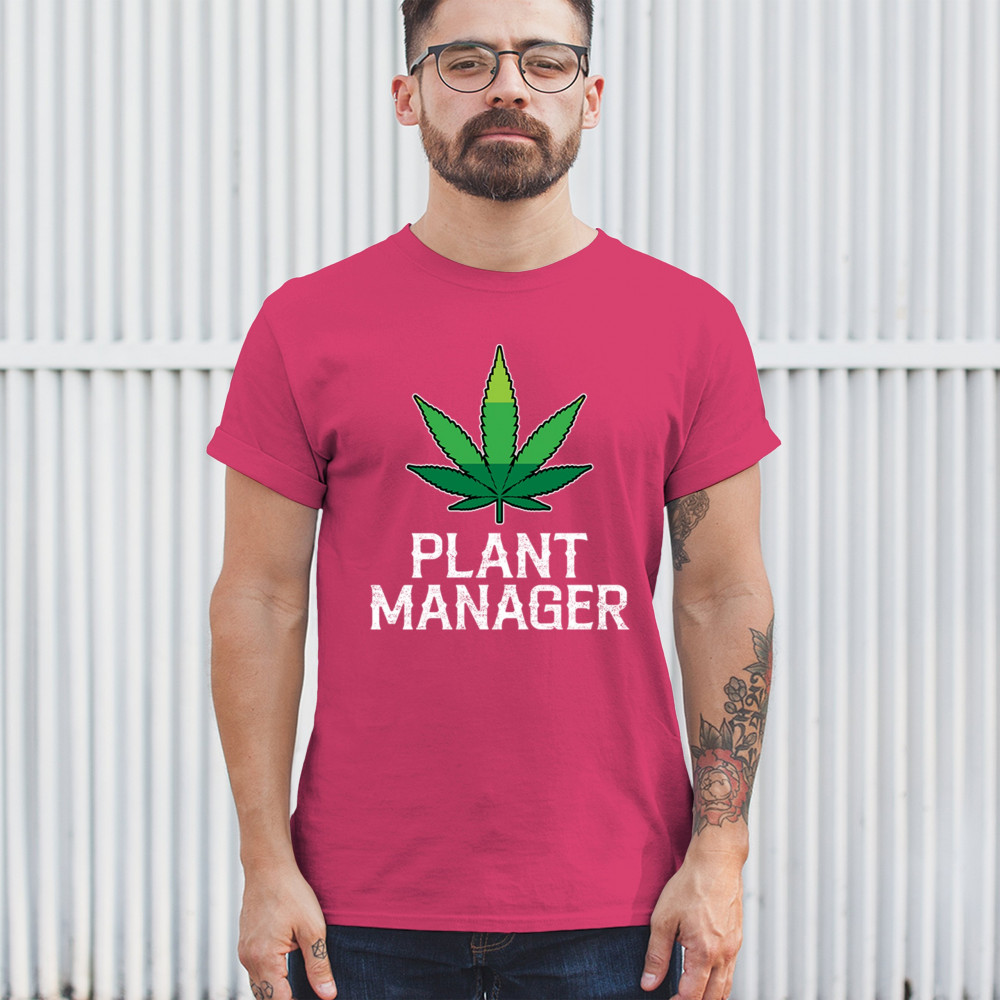 Humorous "Plant Manager" design featuring a bold green cannabis leaf. Perfect for fans of Mary Jane, stoned humor, and relaxed style. Ideal for chill vibes.