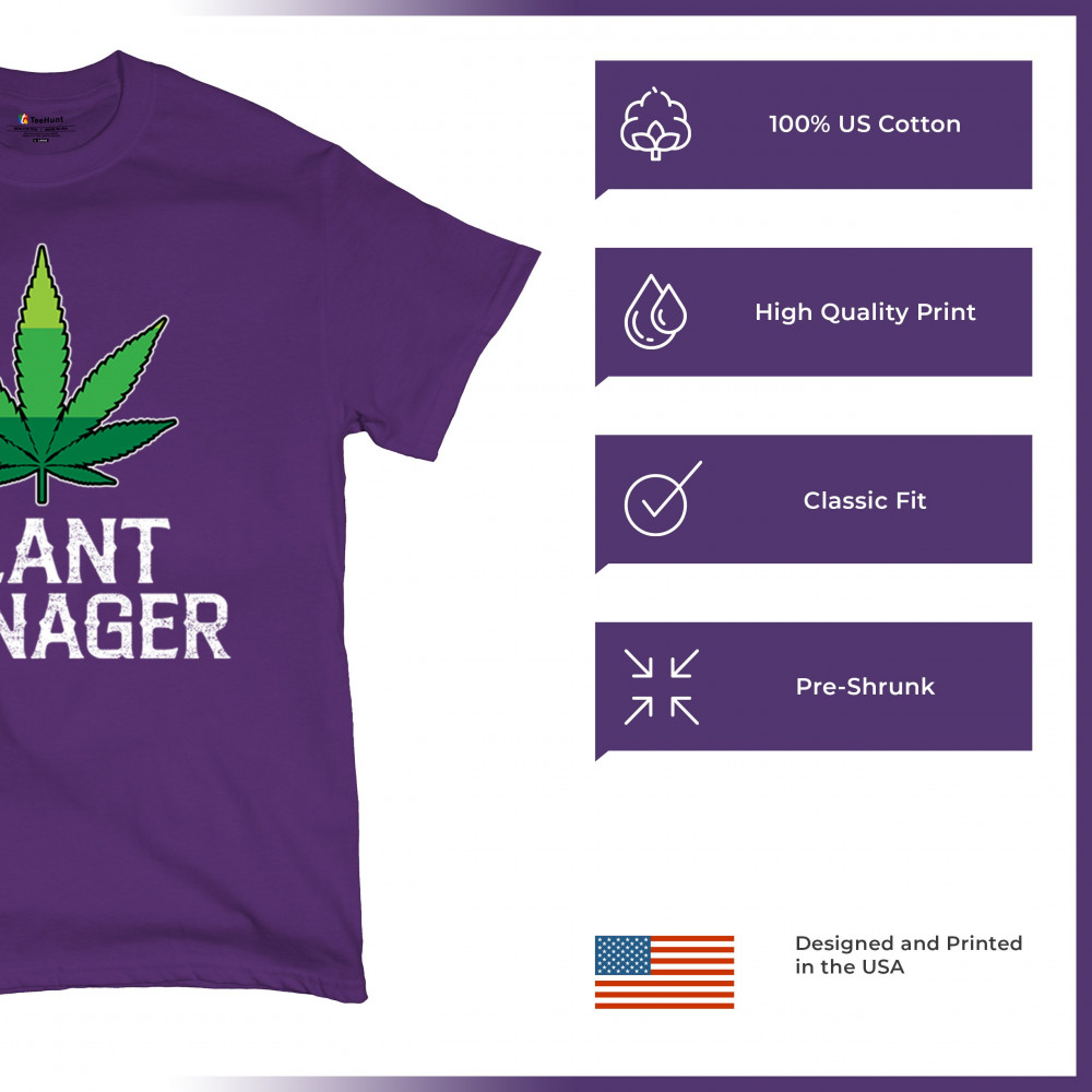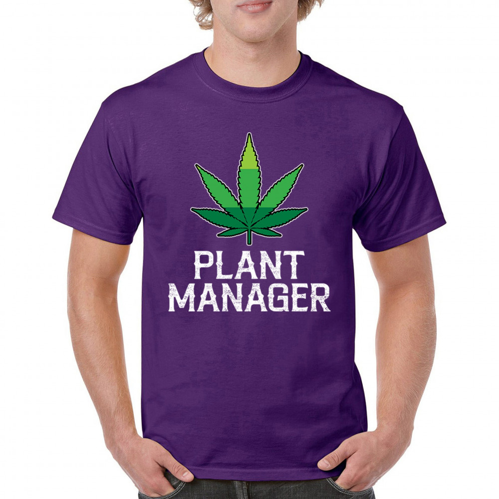 Humorous "Plant Manager" design featuring a bold green cannabis leaf. Perfect for fans of Mary Jane, stoned humor, and relaxed style. Ideal for chill vibes.
