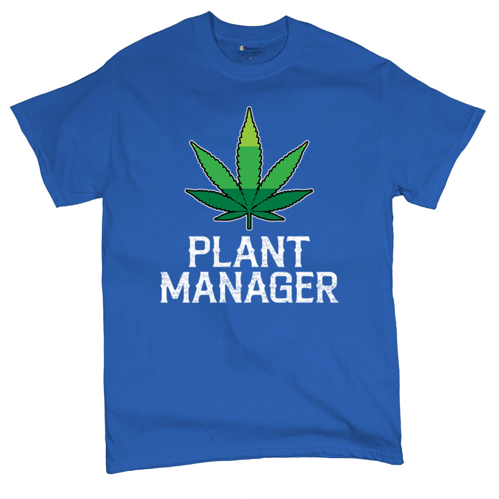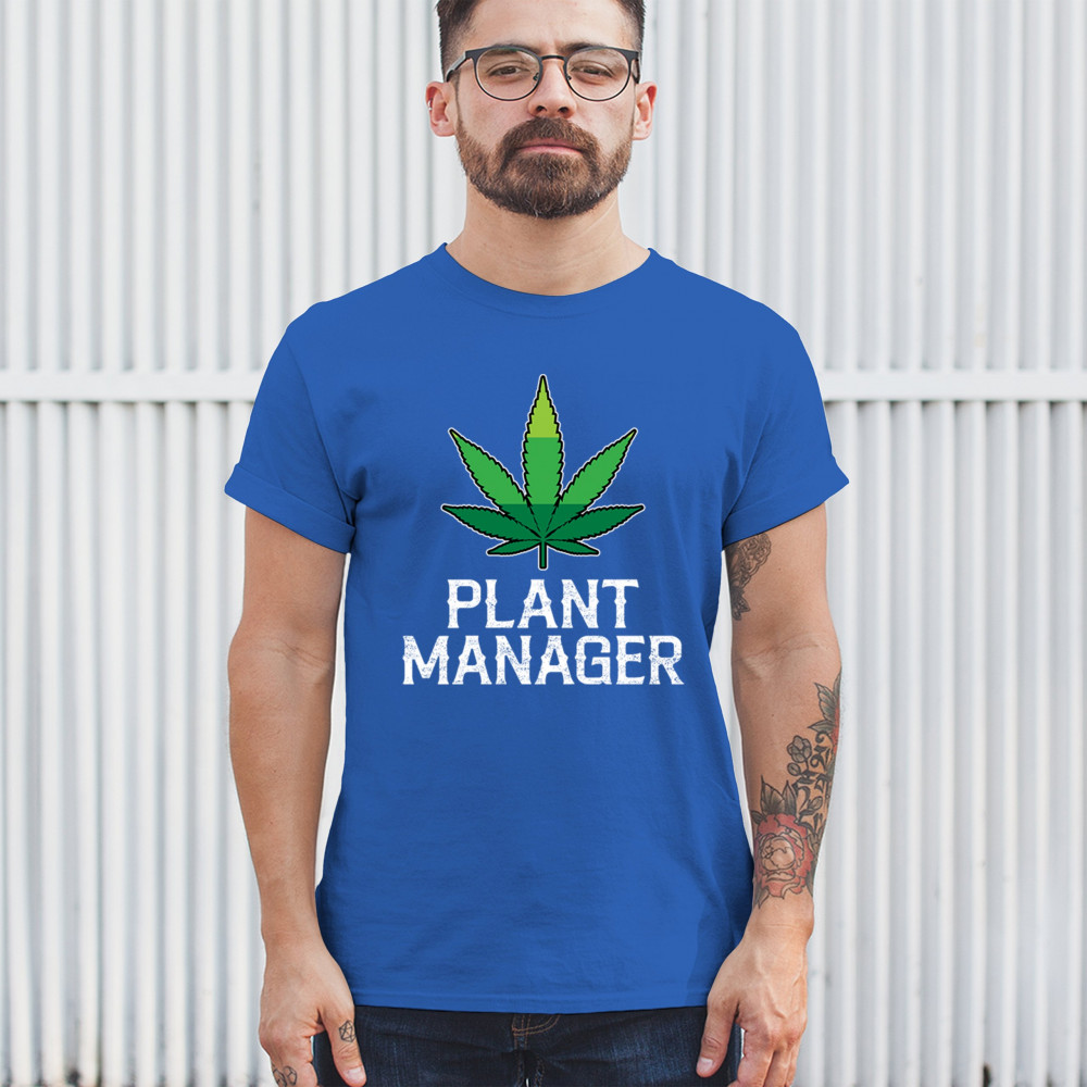 Humorous "Plant Manager" design featuring a bold green cannabis leaf. Perfect for fans of Mary Jane, stoned humor, and relaxed style. Ideal for chill vibes.