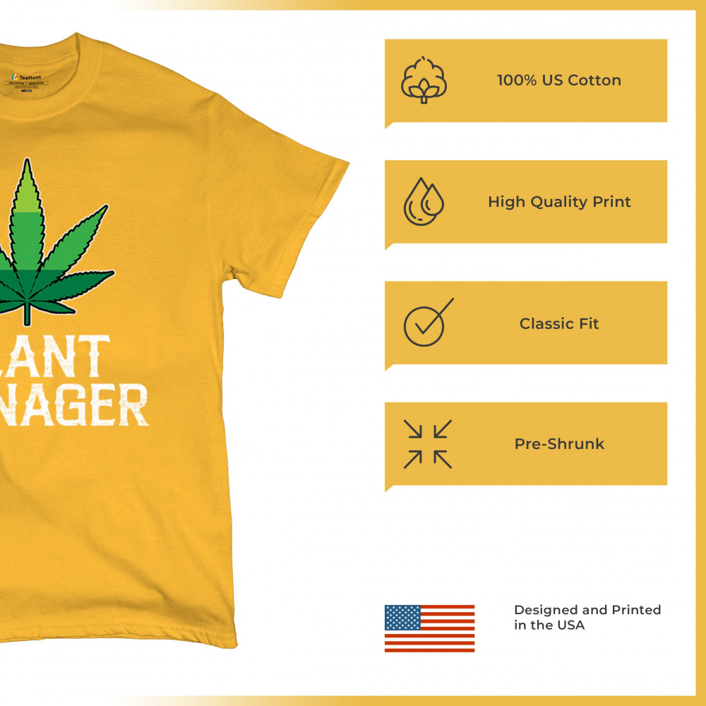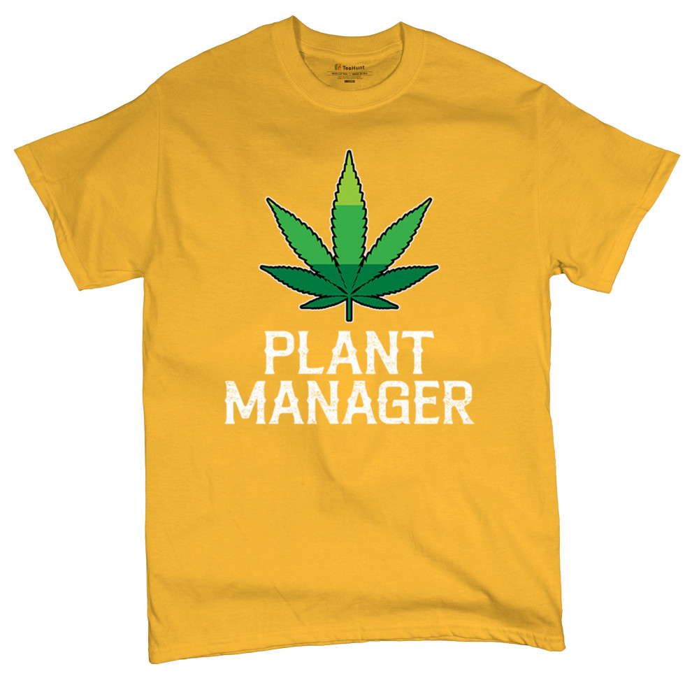 Humorous "Plant Manager" design featuring a bold green cannabis leaf. Perfect for fans of Mary Jane, stoned humor, and relaxed style. Ideal for chill vibes.