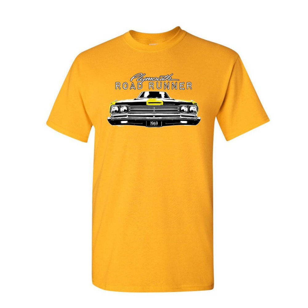 PLYMOUTH ROAD RUNNER 1969 t-shirt route 66 american made classic mens tee shirt yellow