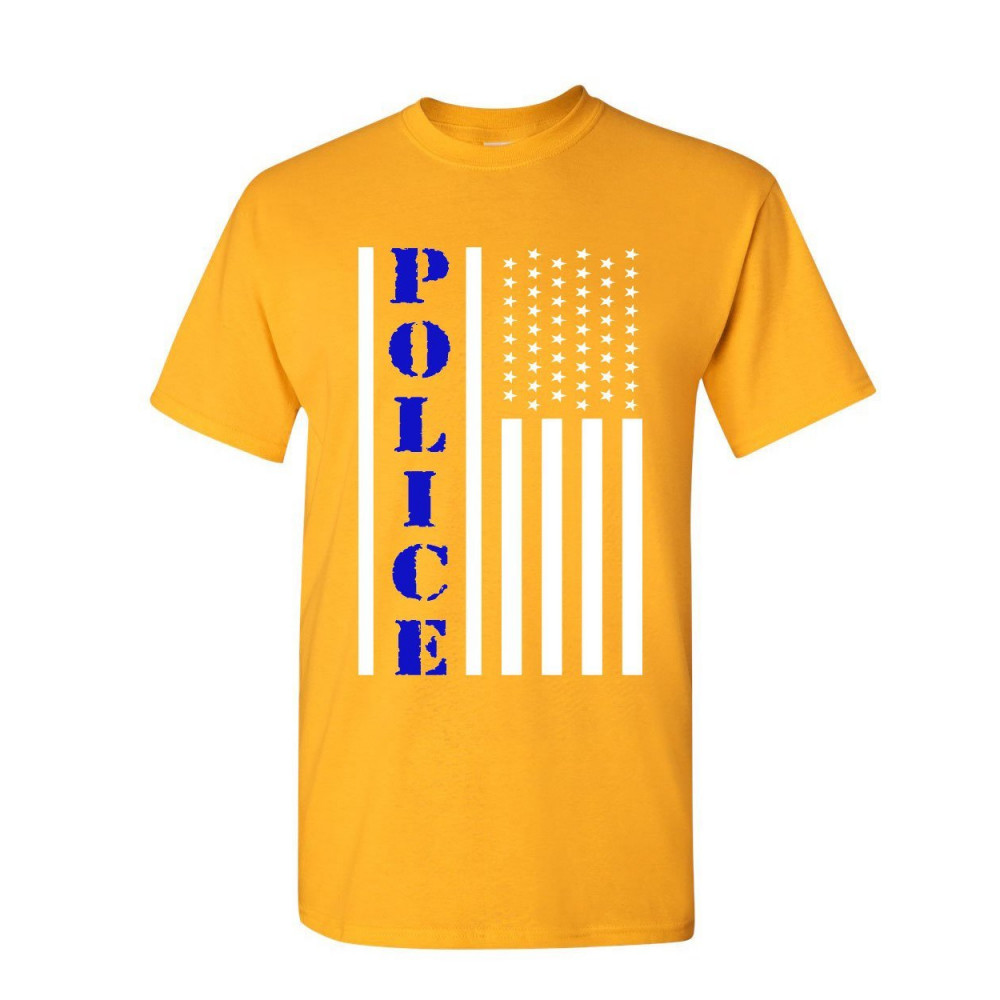 POLICE AMERICAN FLAG t-shirt serve and protect law enforcement mens tee shirt yellow