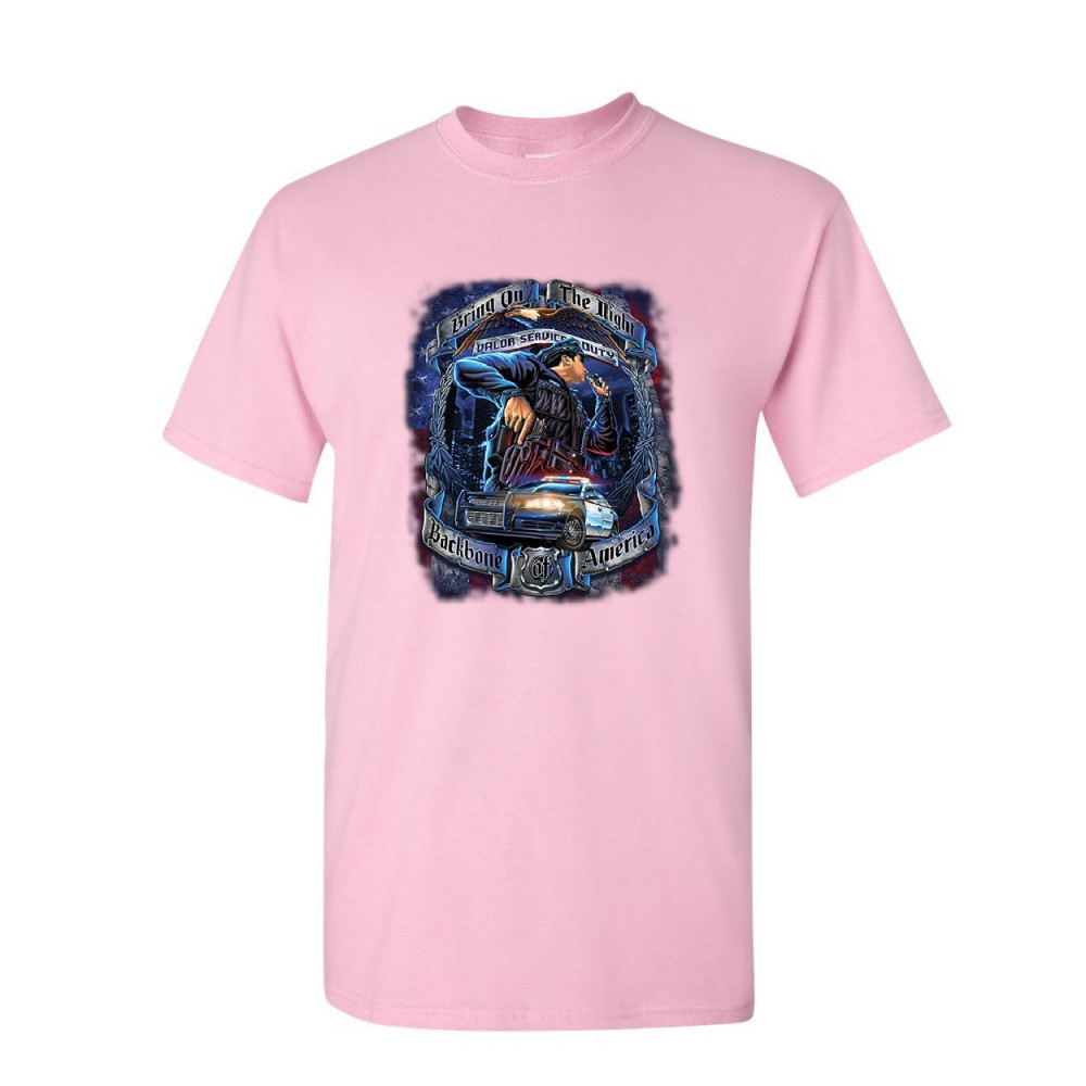 POLICE - BACKBONE OF AMERICA police backbone of america t-shirt valor service duty cop patrol mens tee shirt light pink