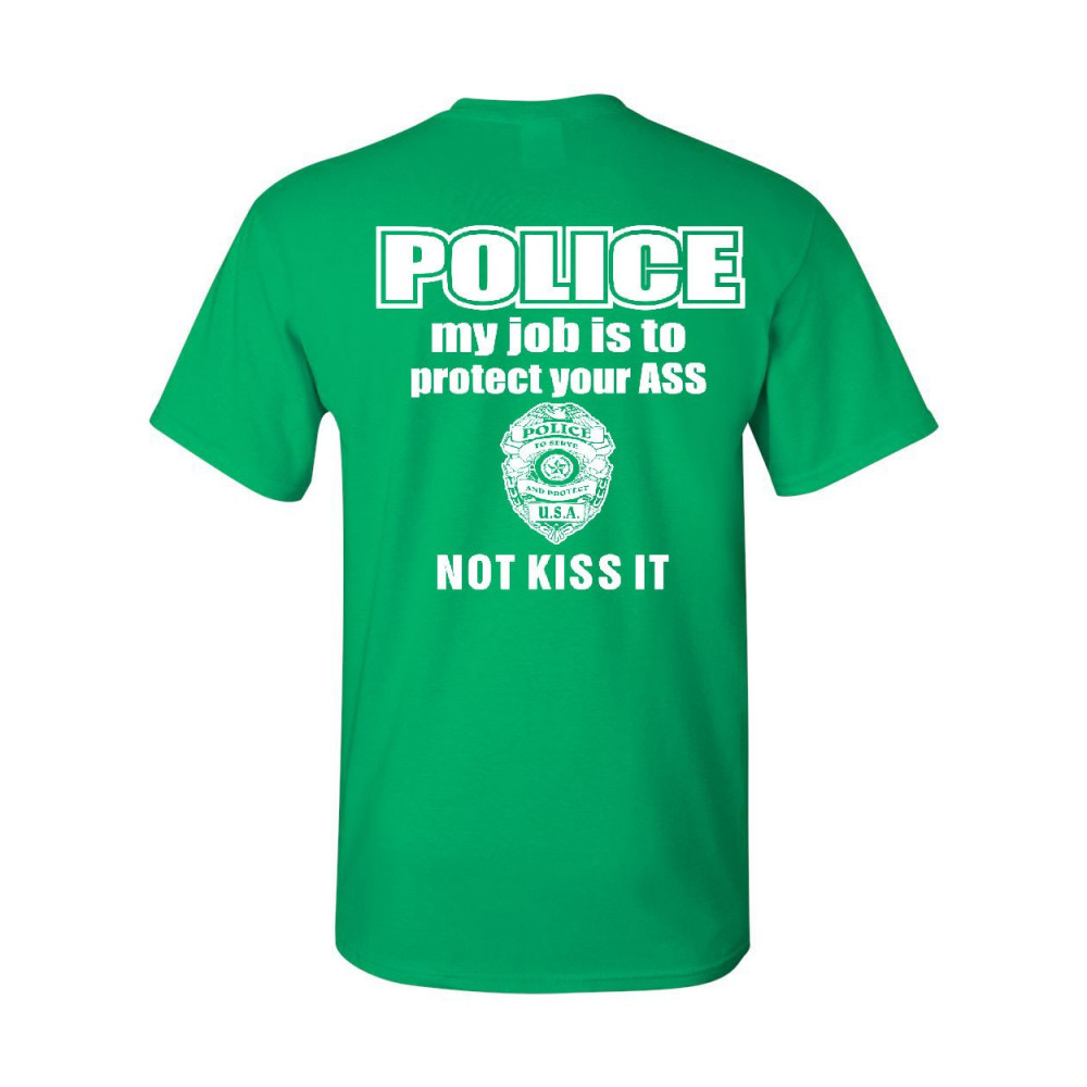 POLICE MY JOB IS TO PROTECT YOUR ASS t-shirt funny cop tee shirt green