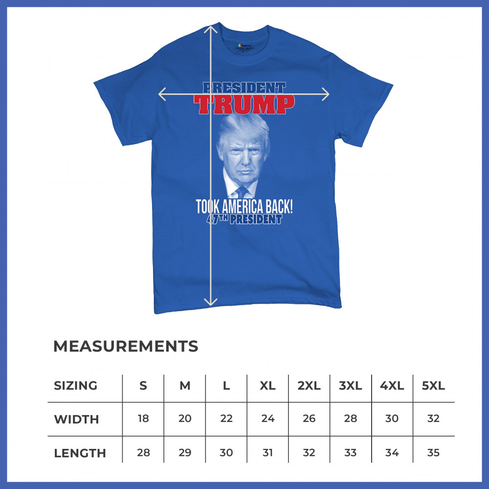 This "President Trump - Took America Back" design is a striking tribute for all Trump supporters, conservatives, and patriots. Representing the 47th President’s vision and dedication, this design is ideal for Republicans and America First advocates who value strong leadership and patriotic pride. Join the Red Wave and wear this design to stand up for a victorious future and America’s enduring values. Perfect for rallies, gatherings, or everyday wear.