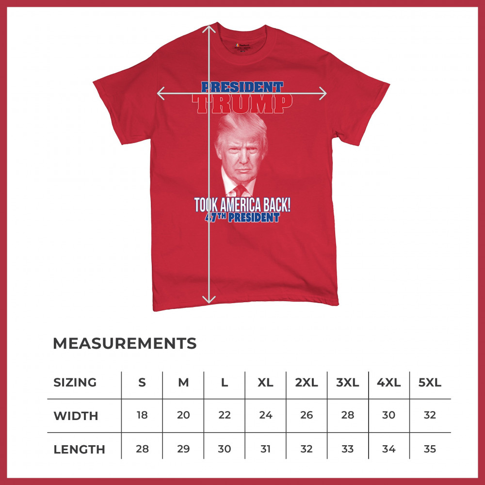 This "President Trump - Took America Back" design is a striking tribute for all Trump supporters, conservatives, and patriots. Representing the 47th President’s vision and dedication, this design is ideal for Republicans and America First advocates who value strong leadership and patriotic pride. Join the Red Wave and wear this design to stand up for a victorious future and America’s enduring values. Perfect for rallies, gatherings, or everyday wear.