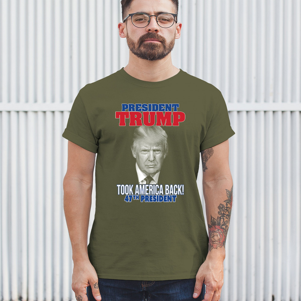 Support President Trump, the 47th President, with a design that proudly states “Took America Back.†Show your America First spirit and conservative pride.