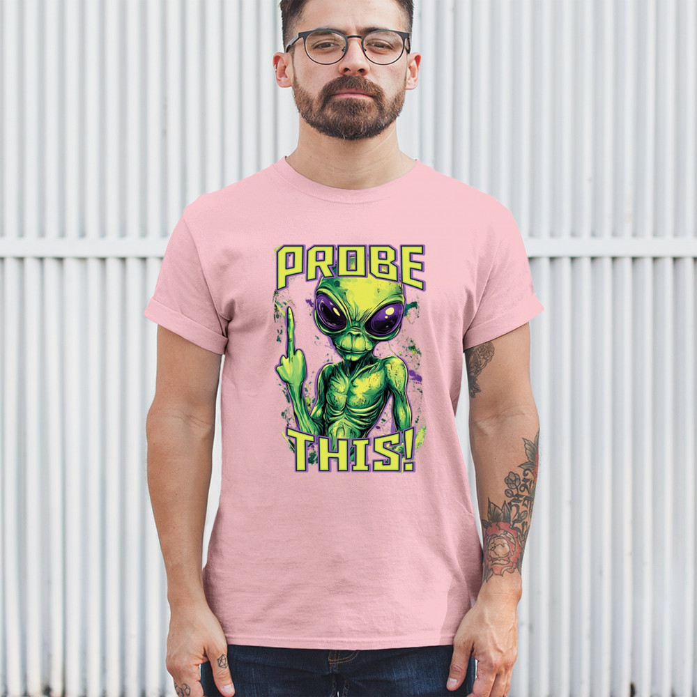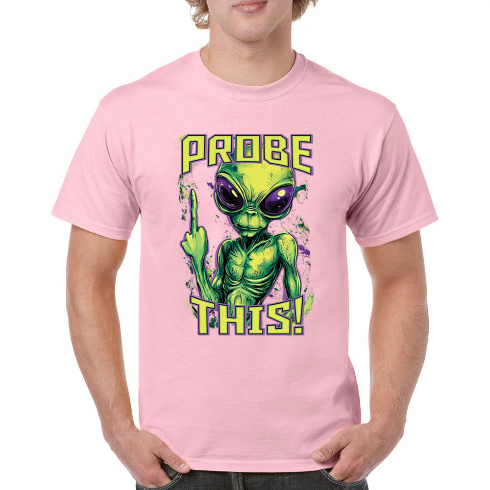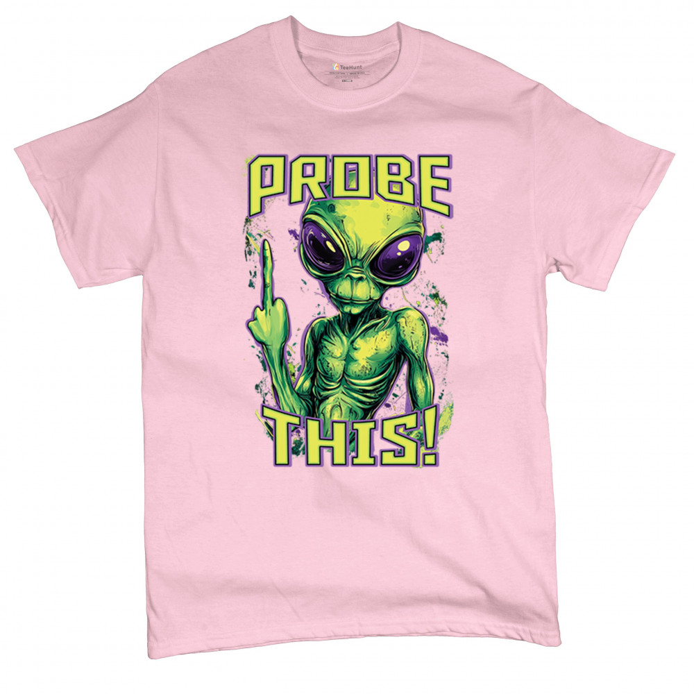 Alien attitude goes full throttle in this rebellious design featuring a defiant extraterrestrial flipping the bird. Bold green and purple tones amplify the sarcasm, making it perfect for UFO fans, protest vibes, and anyone with a dark sense of humor. Wear it loud to alien fests, parties, or anytime you want to stir the stars.