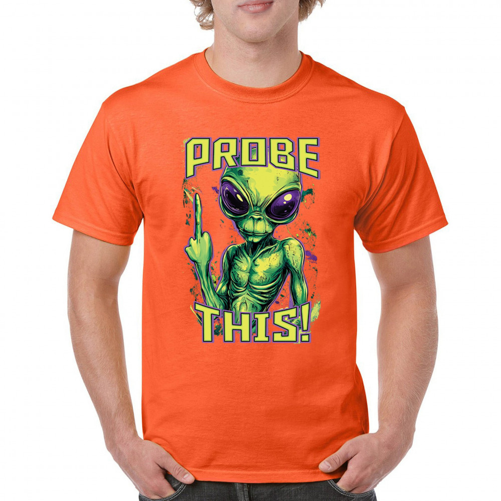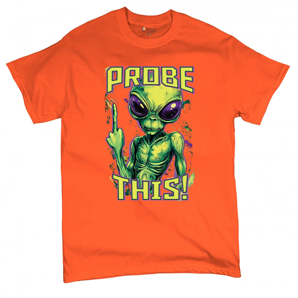Alien attitude goes full throttle in this rebellious design featuring a defiant extraterrestrial flipping the bird. Bold green and purple tones amplify the sarcasm, making it perfect for UFO fans, protest vibes, and anyone with a dark sense of humor. Wear it loud to alien fests, parties, or anytime you want to stir the stars.