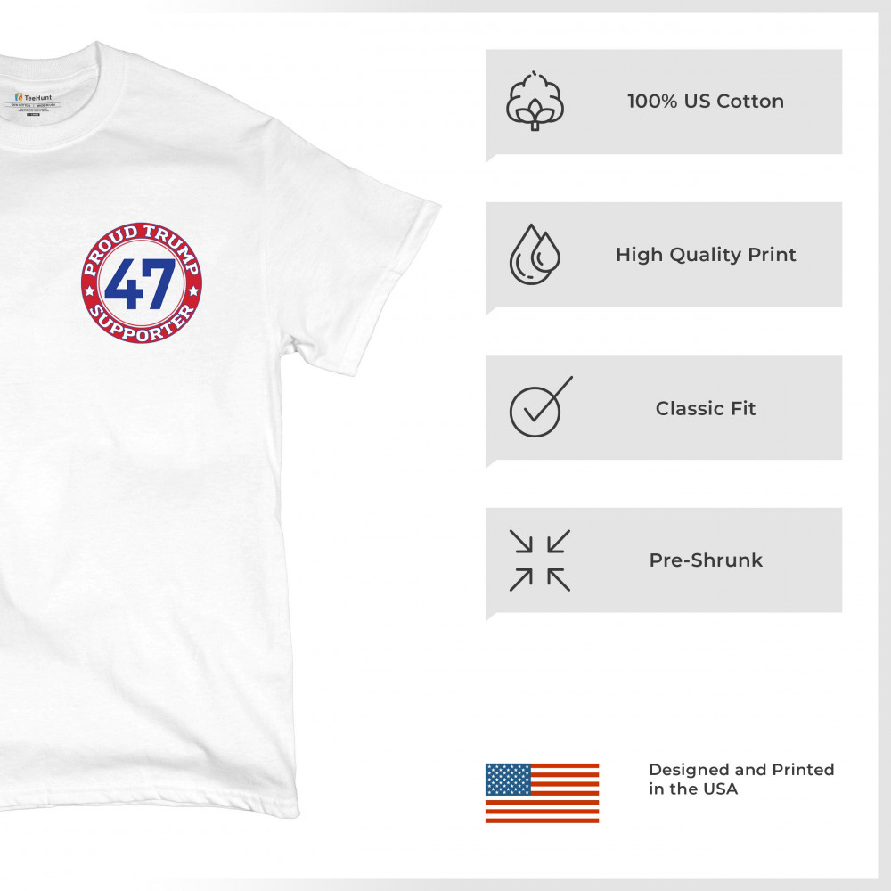 Show your steadfast support for President Trump with our "Trump Supporter 47" design. Emblazoned with patriotic symbols like the American flag and iconic imagery, this design embodies the spirit of the America First movement. Join the Trump Train to victo