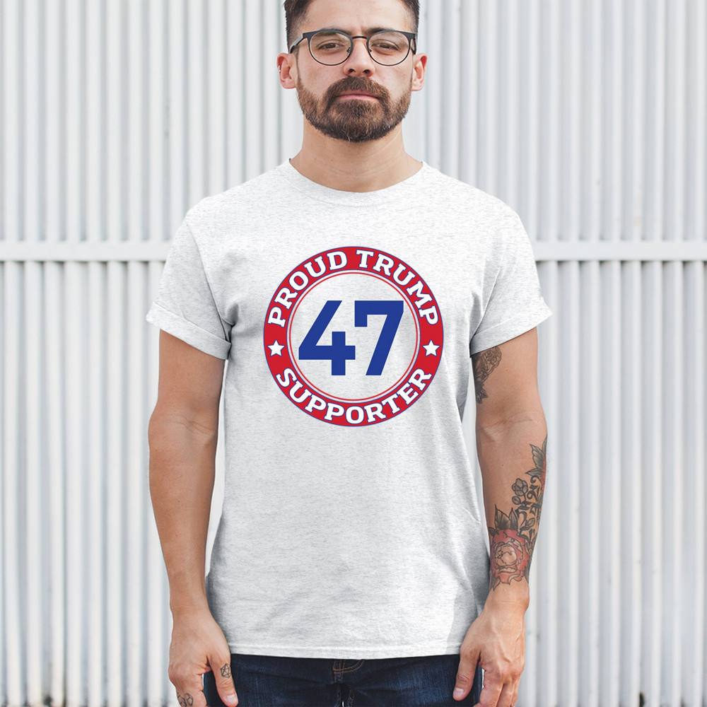 Stand tall as a Proud Trump Supporter 47, echoing the call for America First principles and conservative values. Embrace the Trump Train to victory and showcase your unwavering commitment to the Republican cause. Trust in God, not government, as you stand