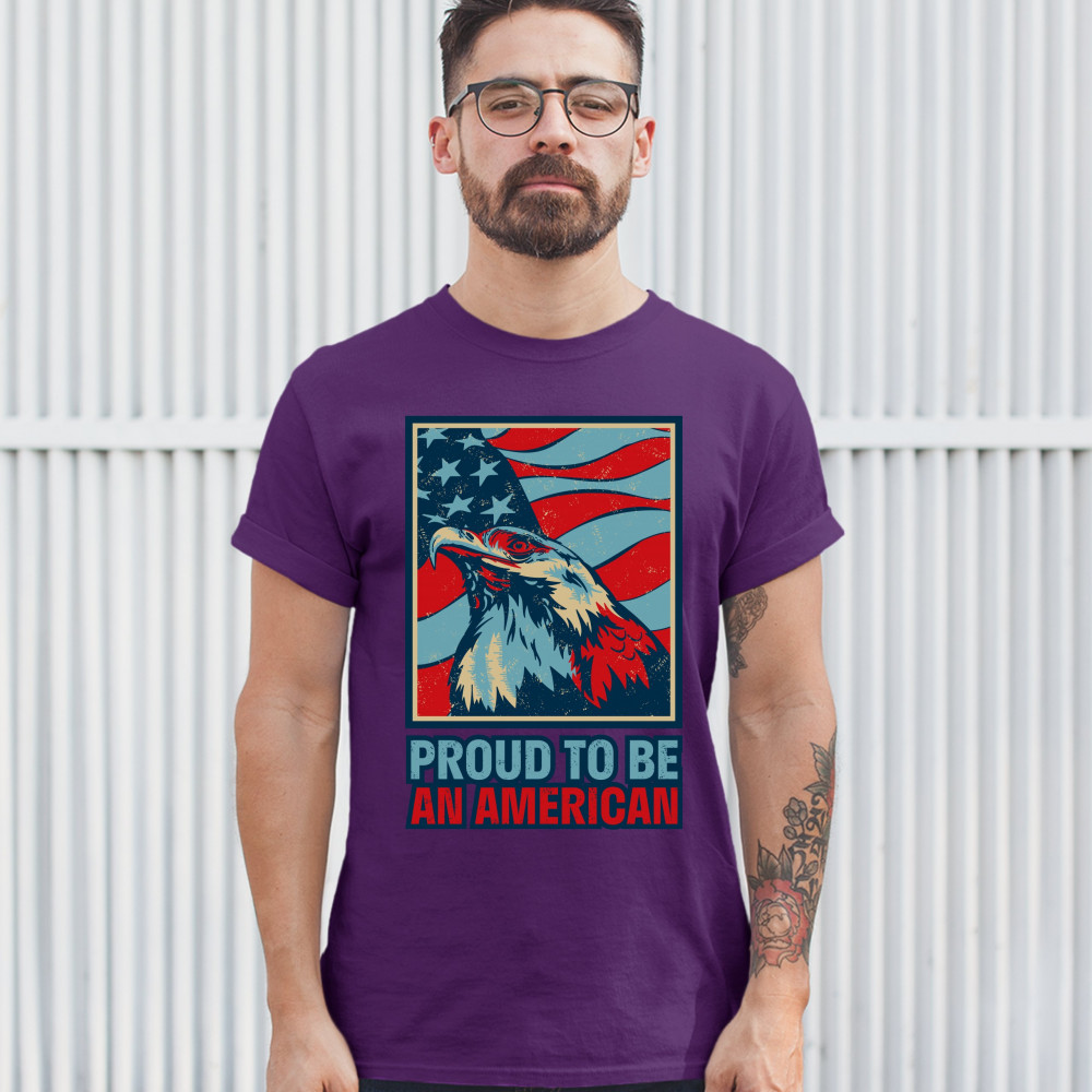 PROUD TO BE AN AMERICAN t-shirt 4th of july bald eagle patriotic men's tee purple