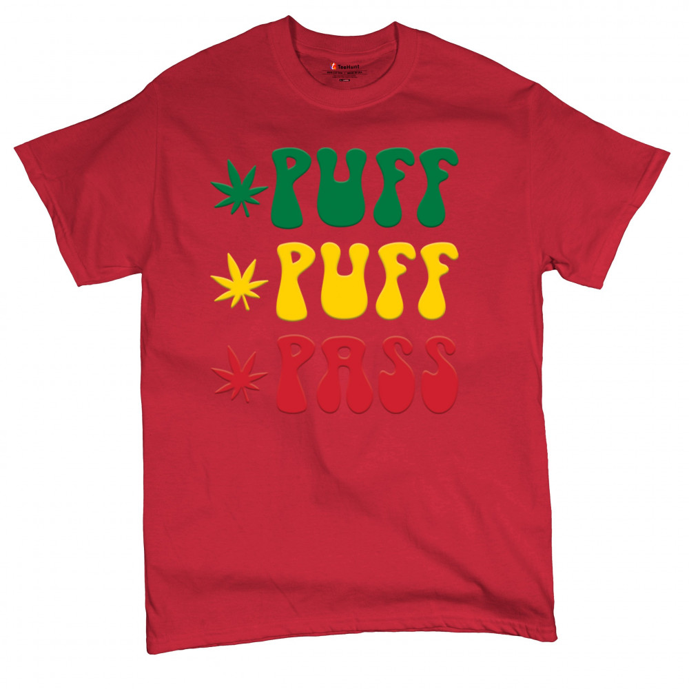 Get into the groove with our "Puff Puff Pass" T-shirt, a vibrant nod to Rasta culture and camaraderie. A bold, carefree statement for the chilled out.