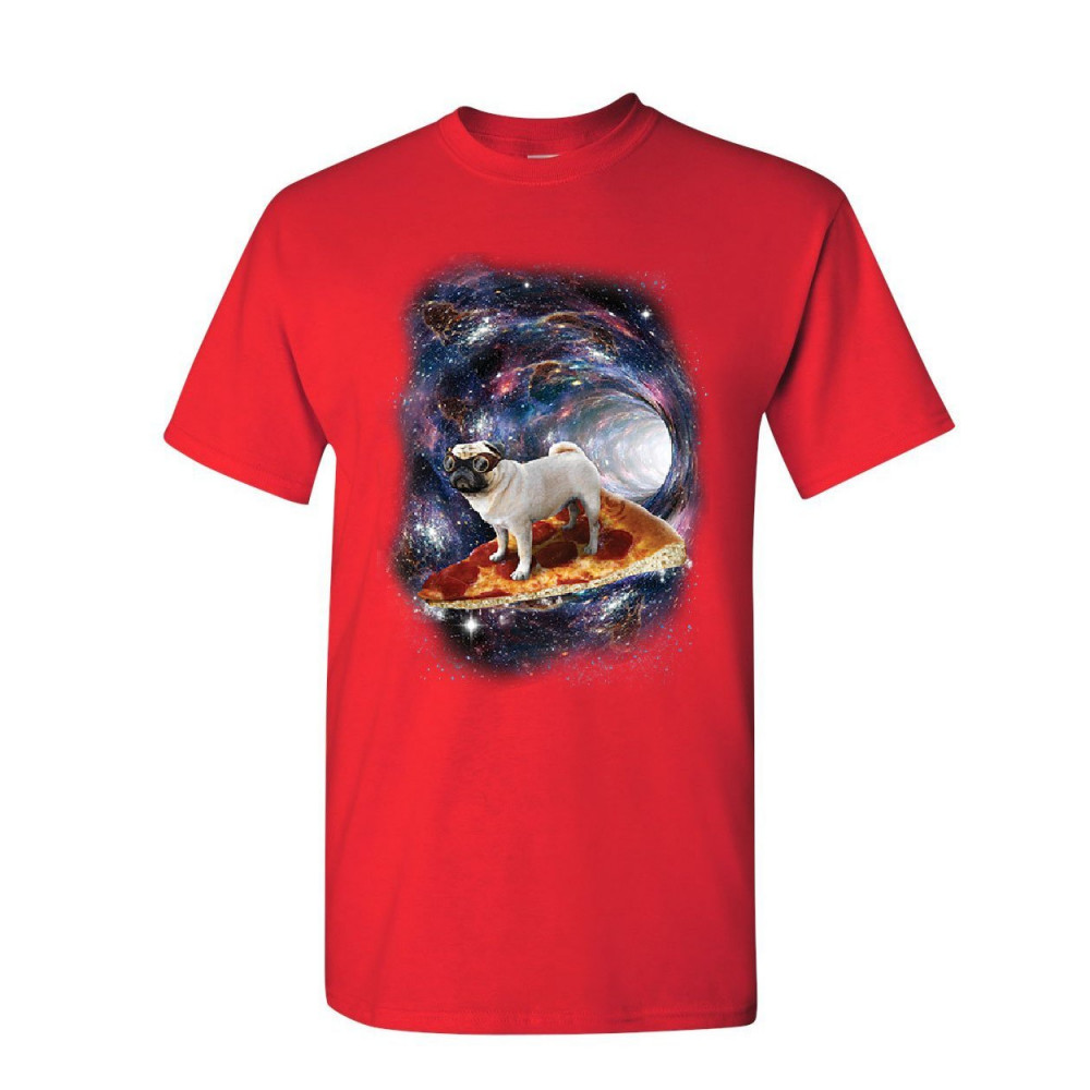PUG SPACE PIZZA SURFER t-shirt weird goggles galaxy dog lovers mens tee shirt red