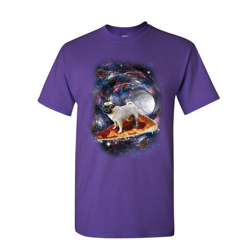 PUG SPACE PIZZA SURFER t-shirt weird goggles galaxy dog lovers mens tee shirt purple