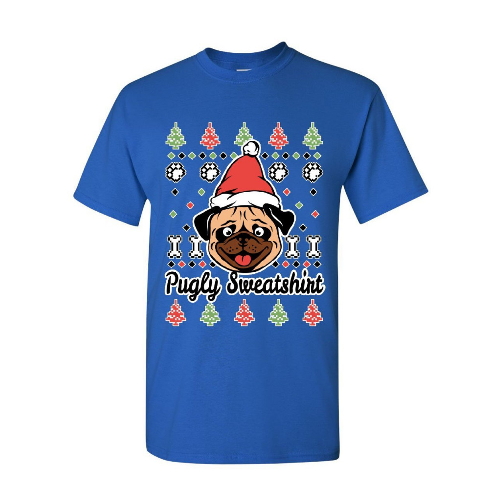 PUGLY SWEATSHIRT t-shirt pug ugly sweater jolly christmas xmas mens tee shirt royal blue