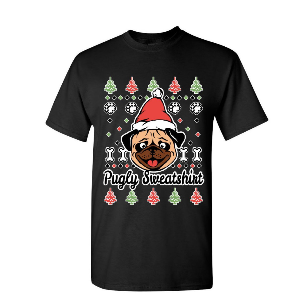 PUGLY SWEATSHIRT t-shirt pug ugly sweater jolly christmas xmas mens tee shirt black