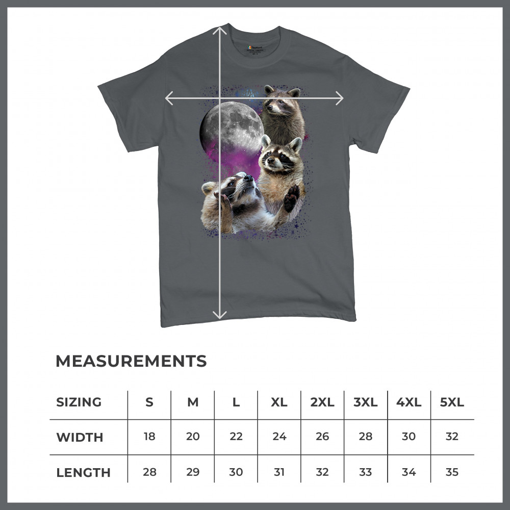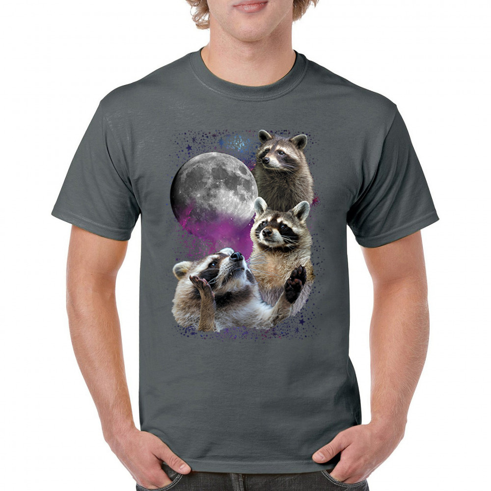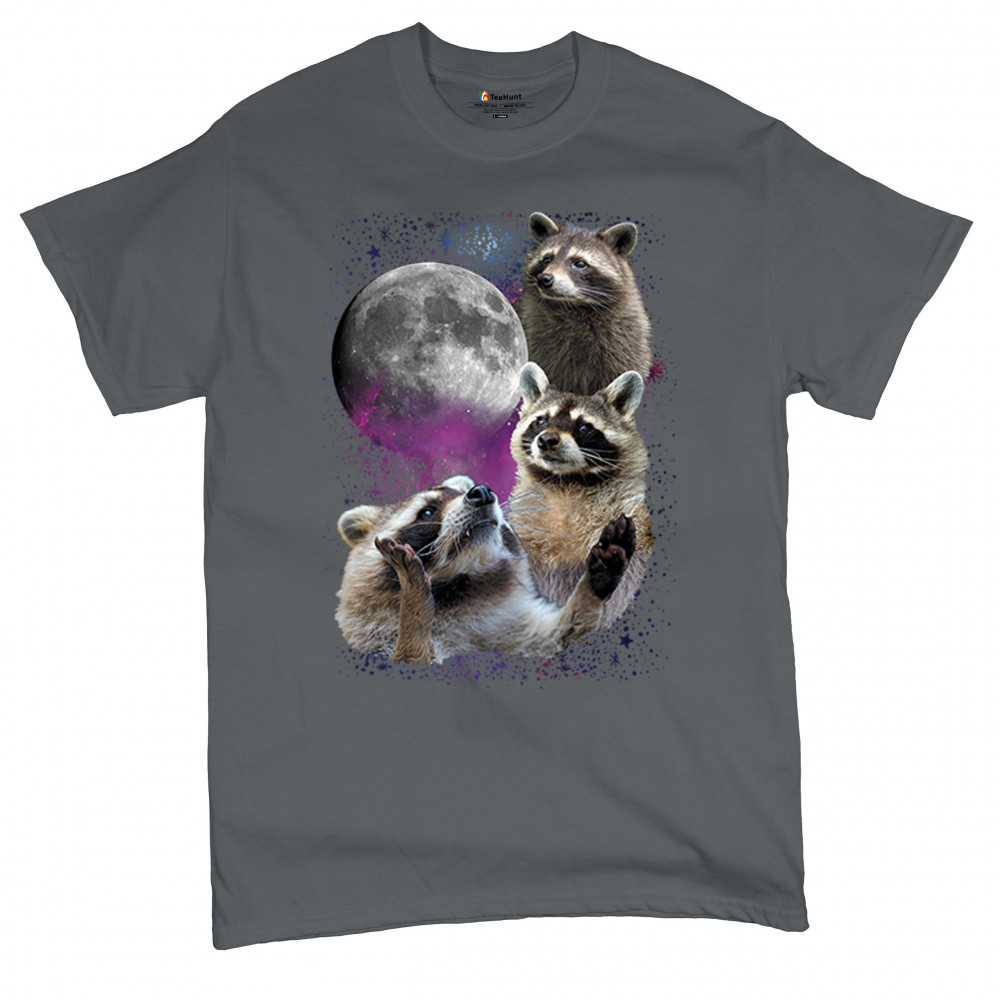 Embrace nature with this quirky raccoon and moon design, perfect for space and animal lovers. Ideal for casual wear or gifts.