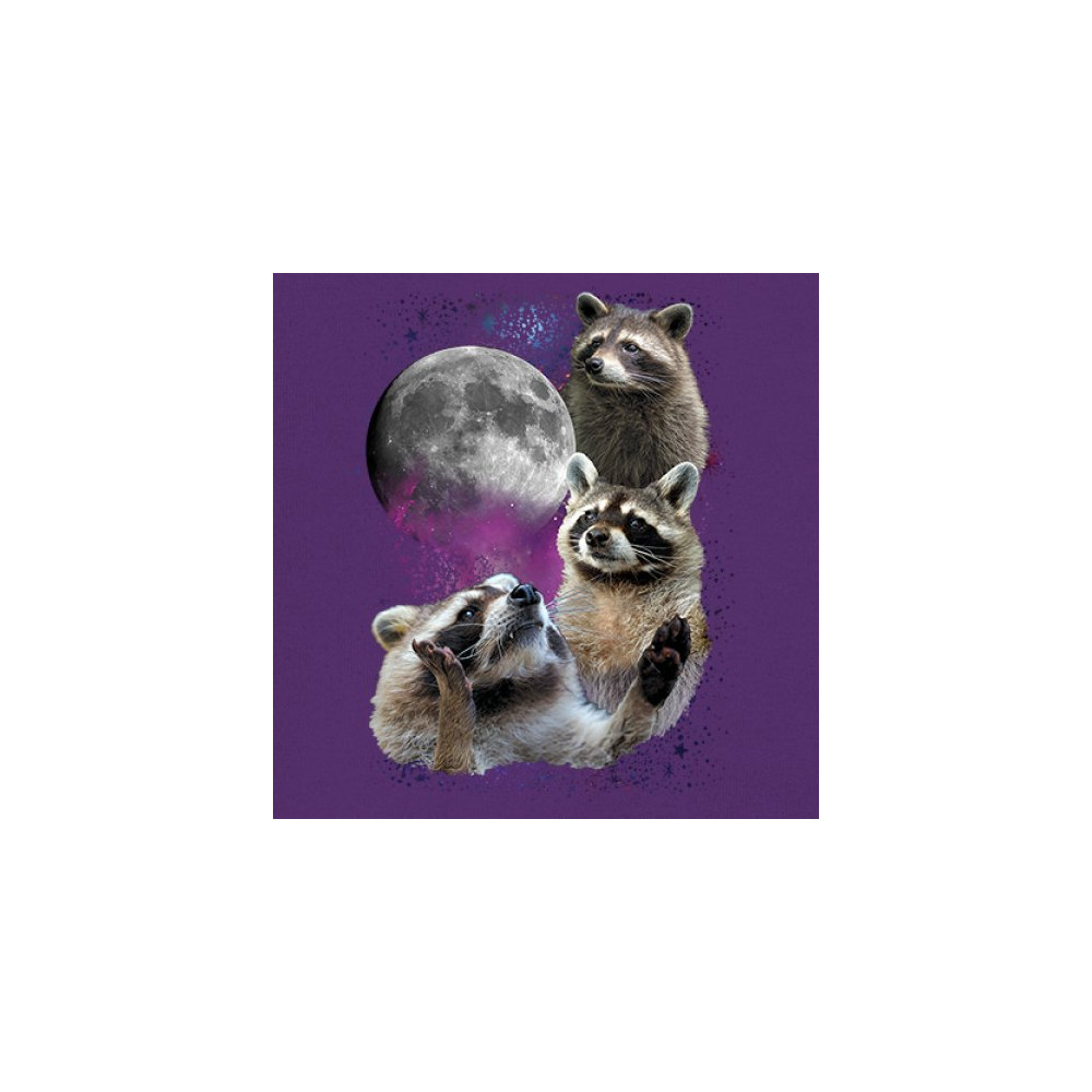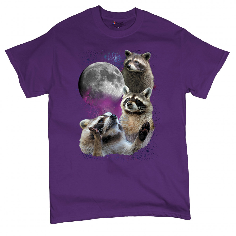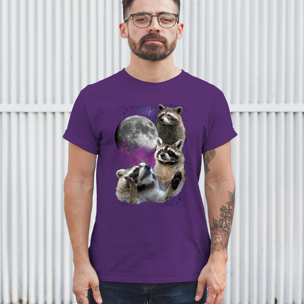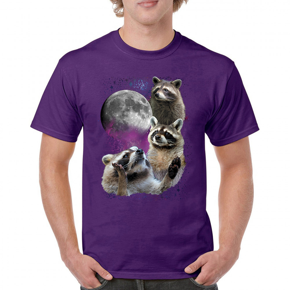 Step into the wild with this delightful and quirky raccoon and moon design. This captivating graphic features three raccoons against a backdrop of a starry night sky and a full moon, evoking the mysterious beauty of the wilderness. Perfect for nature lovers and those who appreciate nocturnal creatures with a silly twist, this design is a versatile addition to any casual wardrobe. It's ideal for outdoor adventures, relaxed outings, or themed events, and makes a thoughtful gift for anyone who loves the night and its charming wildlife.