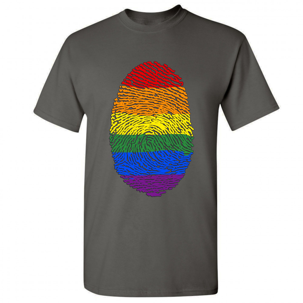 RAINBOW FINGERPRINT t-shirt gay pride month lgbtq support ally men's tee charcoal